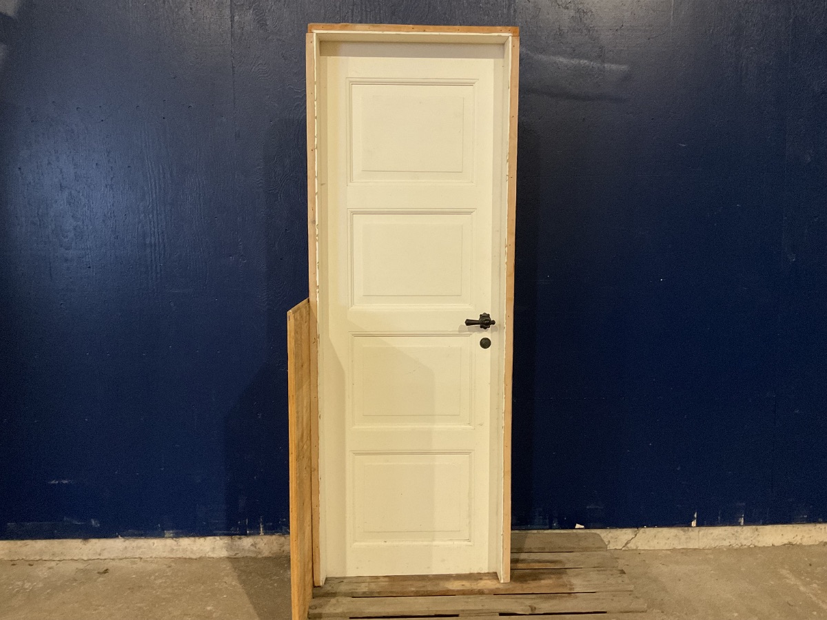 Brugt Gammel Fyldningsdør, træ/træ, højrehængt, indadgående, ingen bundstykke, nøgle medfølger ikke, mål: H202 B73 D12.9 Varenummer: 1662 Højrehængt, Indadgående, Enkelt, Plader, Ingen, Træ/Træ, Andet