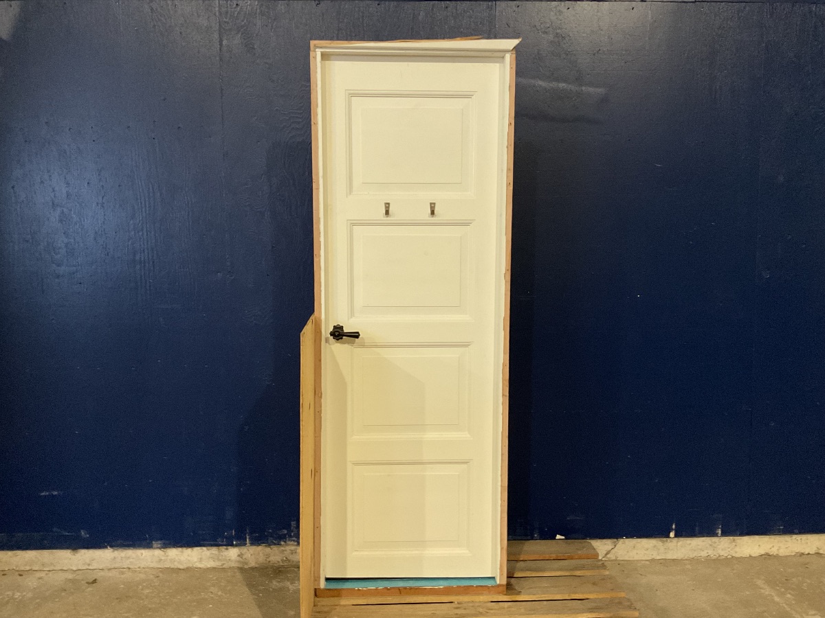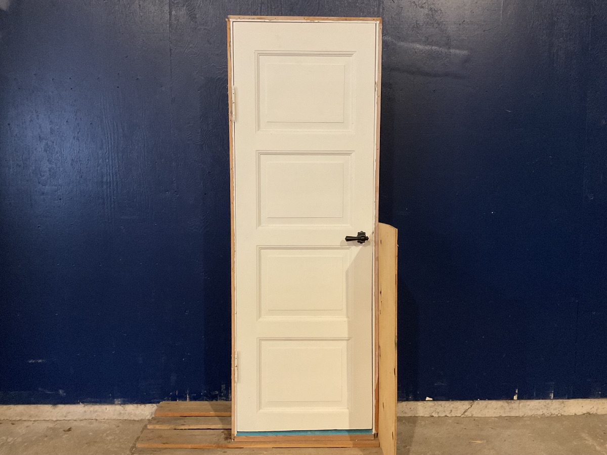Brugt Gammel Fyldningsdør, træ/træ, venstrehængt, indadgående, hårdttræsbundstykke, mål: H205,3 B72,3 D8 Varenummer: 1664 Venstrehængt, Indadgående, Enkelt, Plader, Hårdt træ, Træ/Træ, Andet