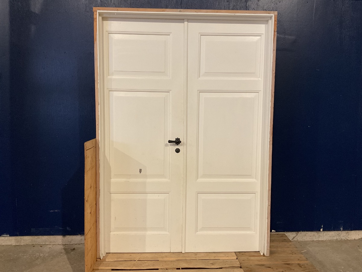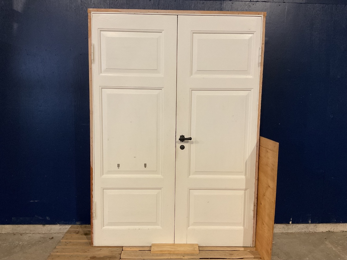Brugt Dobbelt Indvendig Fyldningsdør, træ/træ, hængt på begge sider, ingen bundstykke, nøgle medfølger ikke, mål: H206 B147,5 D12,8 Varenummer: 1667 Højrehængt, Venstrehængt, Indadgående, Dobbelt, Plader, Ingen, Træ/Træ, Andet