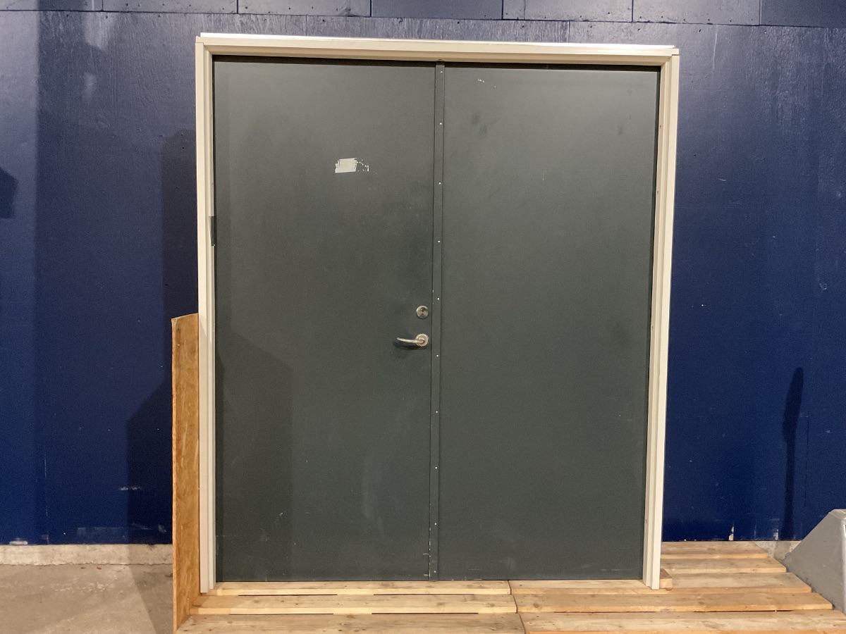 Brugt Dobbelt Indvendig Dør, træ/træ, hængt på begge sider, indadgående, ingen bundstykke, dørpumpe i begge døre, mål: H207,7 B179,1 D12 Varenummer: 1685 Højrehængt, Venstrehængt, Indadgående, Dobbelt, Plader, Ingen, Træ/Træ, Andet