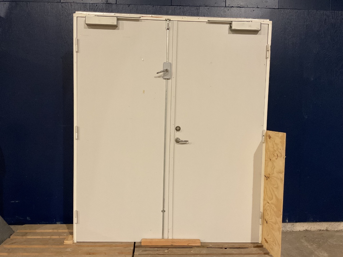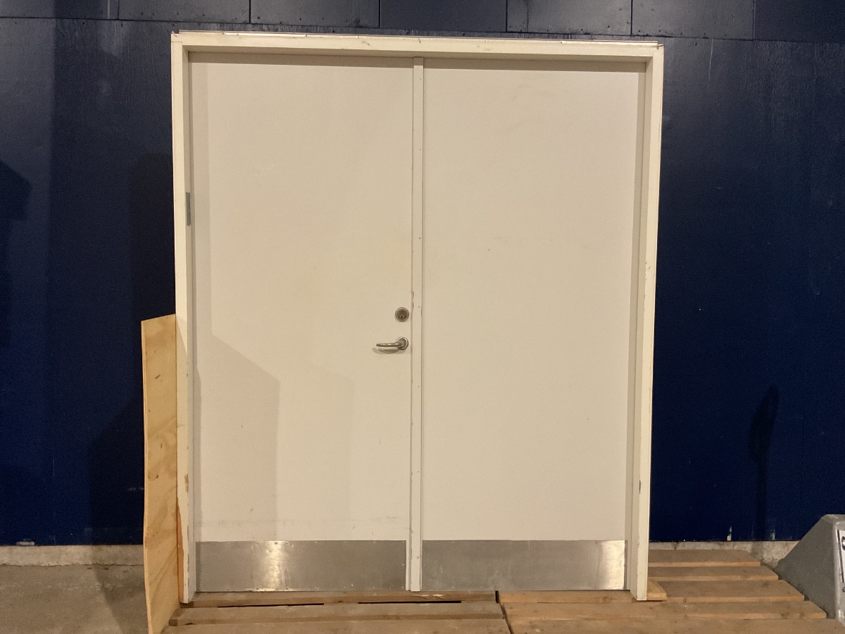 Brugt Dobbelt Indvendig Dør, træ/træ, hængt på begge sider, ingen bundstykke, dørpumpe på begge sider, medfølger ikke nøgle, der er BD60 mærker i venstre side af døren men ikke højre, mål: Varenummer: 1686 Højrehængt, Venstrehængt, Indadgående, Dobbelt, Plader, Ingen, Træ/Træ, Andet