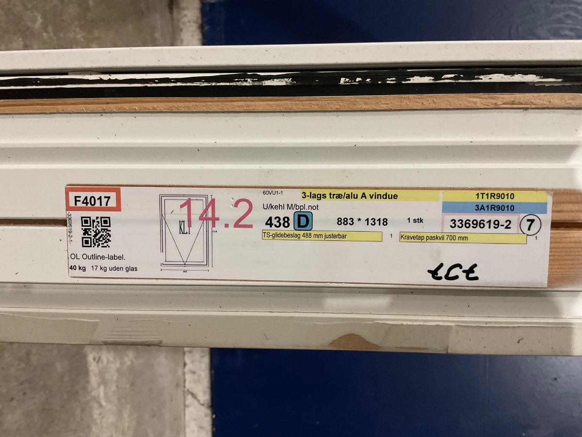 Brugt Outline Vindue, Alu/træ, 3 lag glas, topstyret, mål: H131,8 B88,3 D12,5 Varenummer: 1774 1, 3 lags glas, Topstyret, Termovindue, Træ/Alu, Outline