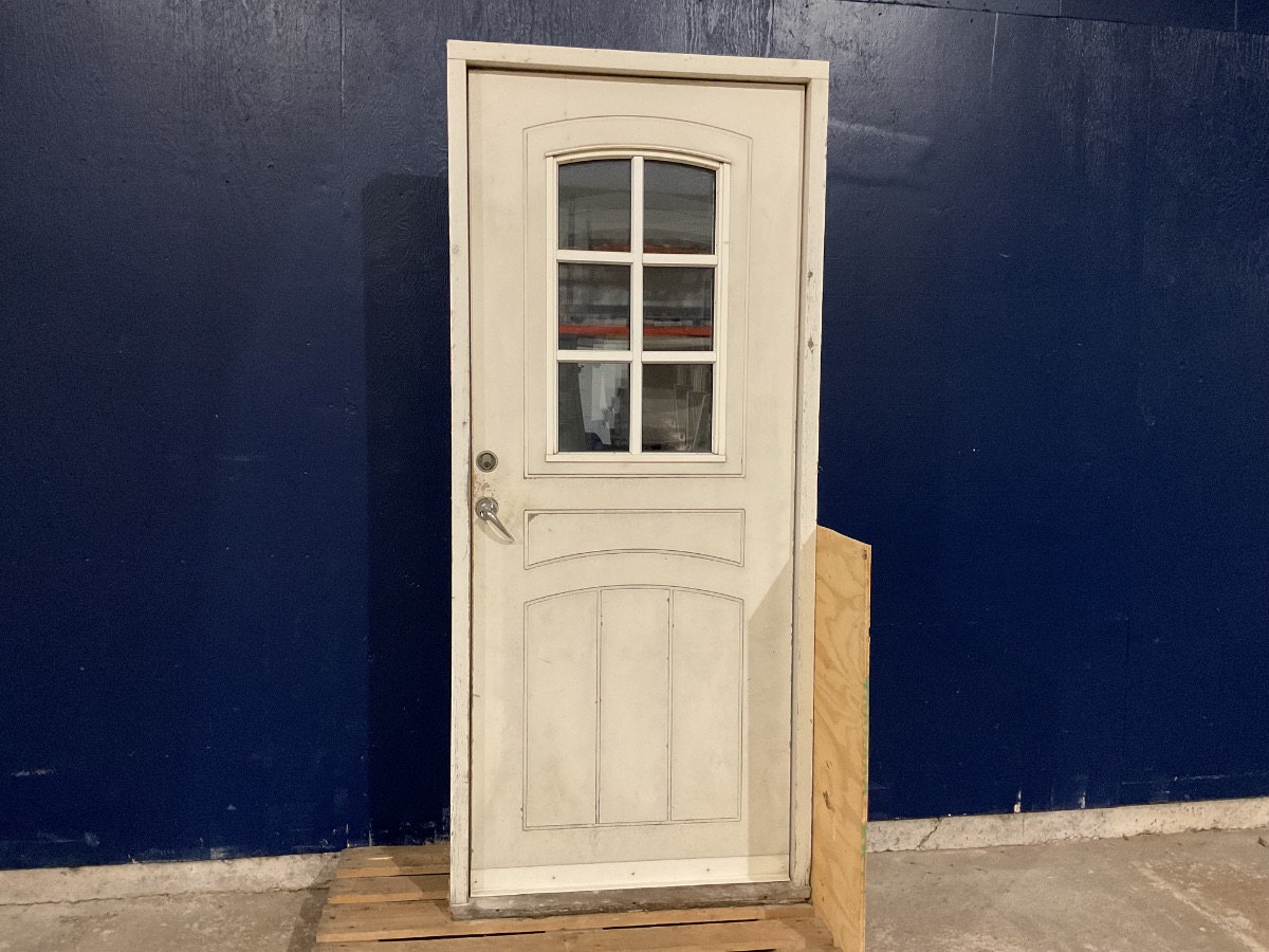Brugt Yderdør, træ/træ, 3 lag glas, venstrehængt, indadgående, hårdttræsbundstykke, OBS ikke originale sprosser, mål: H205 B89 D10,7 Varenummer: 1781 Venstrehængt, Indadgående, Enkelt, 3 lags glas, Hårdt træ, Træ/Træ, Andet