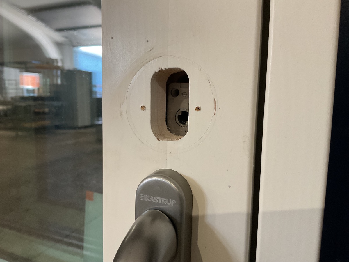 Ubrugt Kastrup Terrassedør, Træ/træ, venstrehængt, indadgående, 3 lag glas, sikkerhedesglas, tonede ruder, alubundstykke, har håndtag på beggesider, mulighed for lås på indersiden, mål: H207,7 B101,2 D14 Varenummer: 1810 Venstrehængt, Indadgående, Enkelt, 3 lags glas, Termo, Alu, Træ/Træ, Kastrup