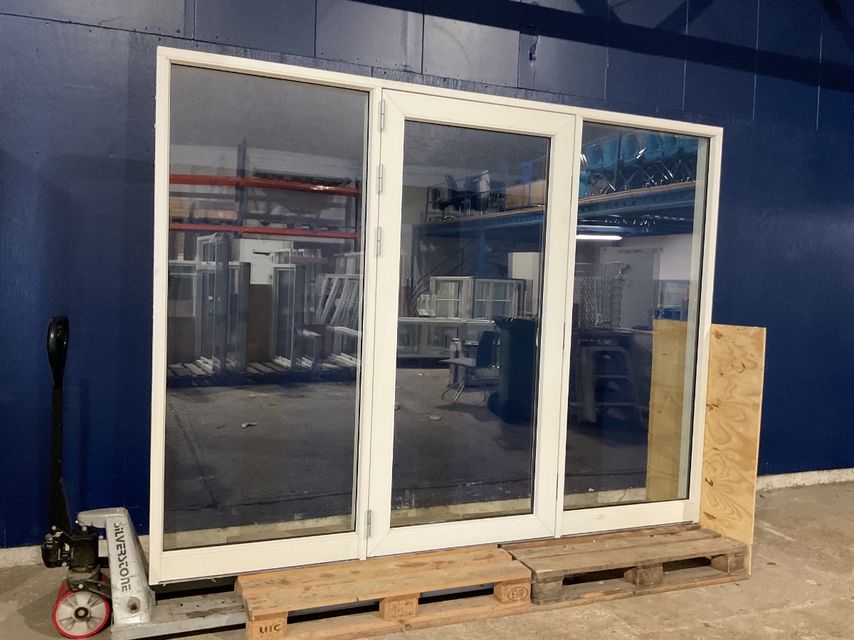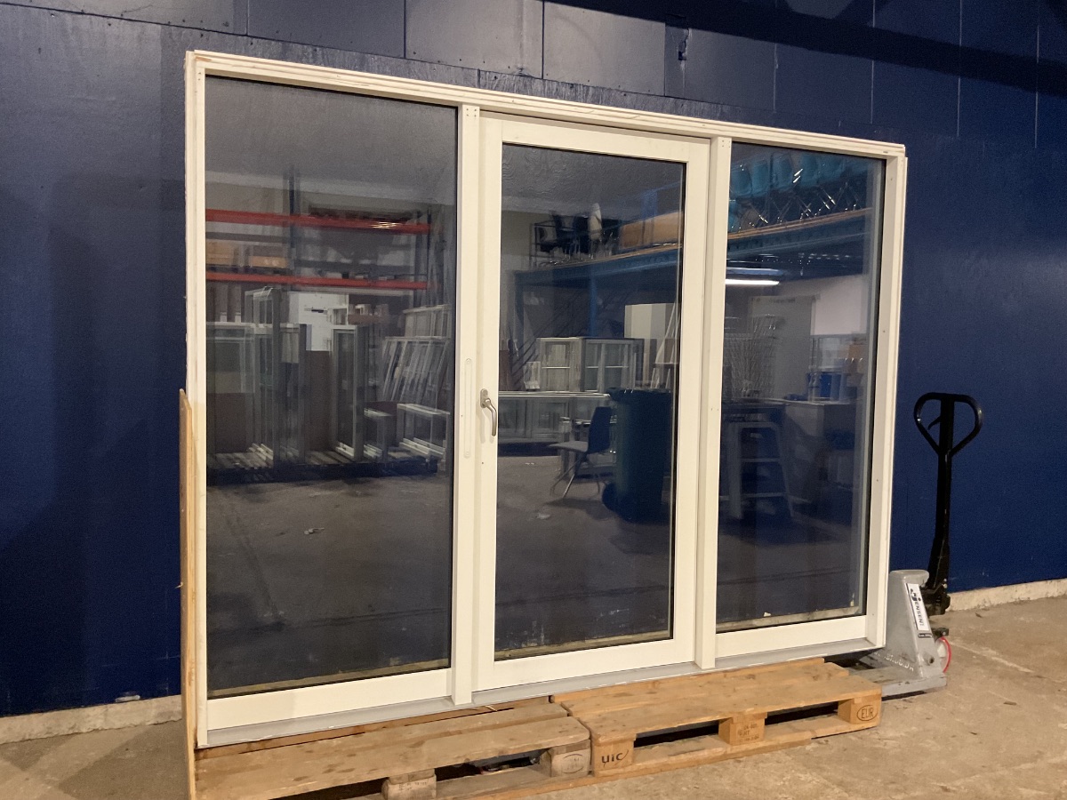 Brugt Outline Terrassedør m. Sidepartier, Alu/træ, 2 lag glas venstrehængt udadgående, fastkarm/fastkarm, alubundstykke, udluftning, mål: H209,8 B275,8 D12,3 Varenummer: 1818 Venstrehængt, Udadgående, Enkelt, 2 lags glas, Sideparti, Alu, Termo, Træ/Alu, Outline