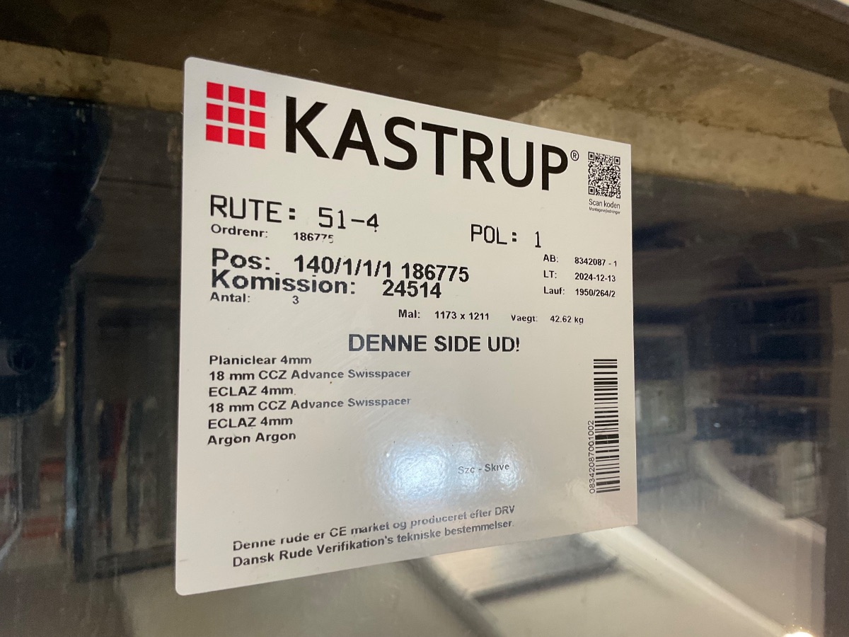 Ubrugt Kastrup Vindue, Alu/træ, 3 lag glas, topstyret, udluftning, mål: H136,3 B133,2 D12,1 Varenummer: 1824 1, 3 lags glas, Topstyret, Udluftning, Termovindue, Træ/Alu, Kastrup