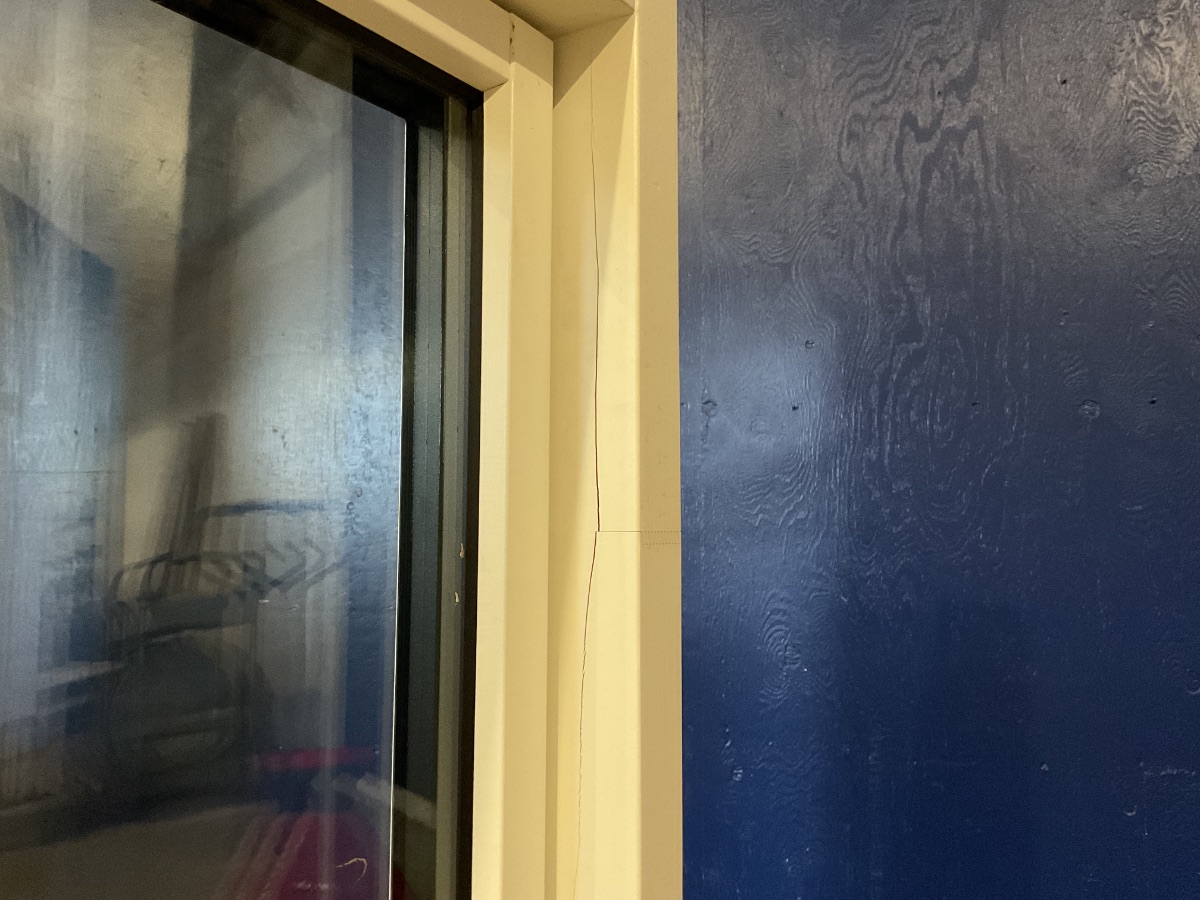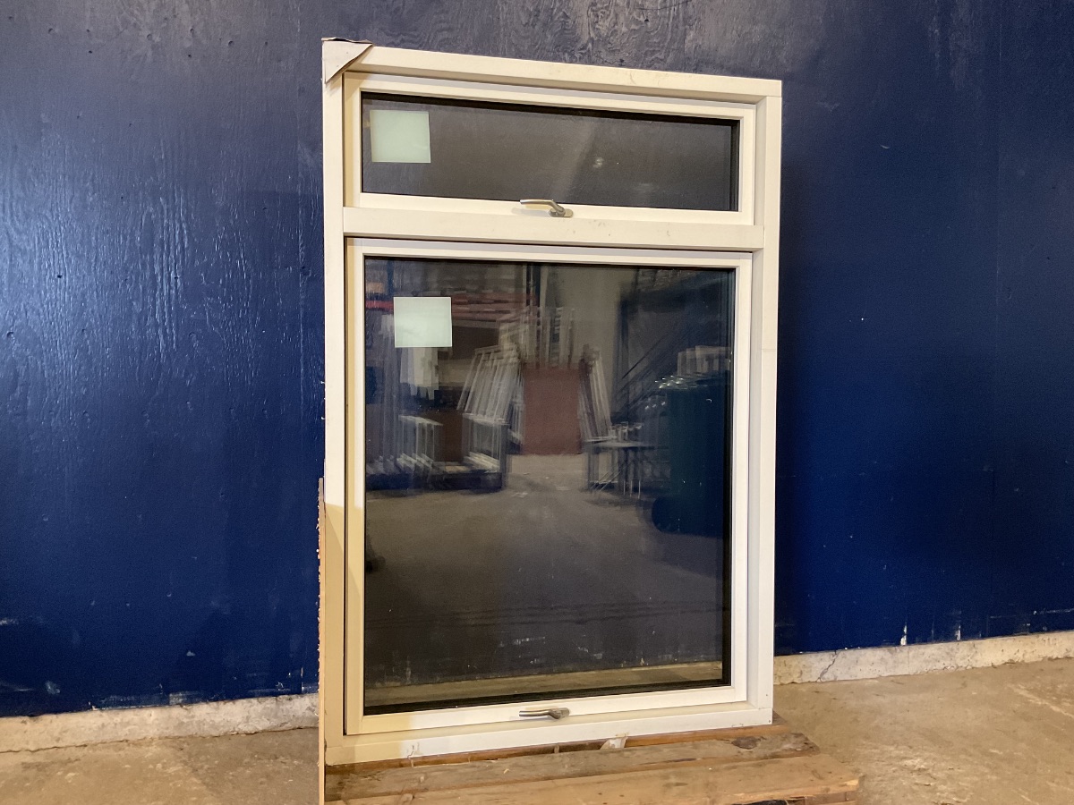 Ubrugt Kastrup Vinduesparti, Alu/træ, 3 lag glas, topstyret/topstyret, vinduet har 2 skader, bule på ydersiden i toppen og skade på indersiden på karmen, mål: H168,4 B115,4 D12,1 Varenummer: 1829 2, 3 lags glas, Topstyret, Termovindue, Træ/Alu, Kastrup