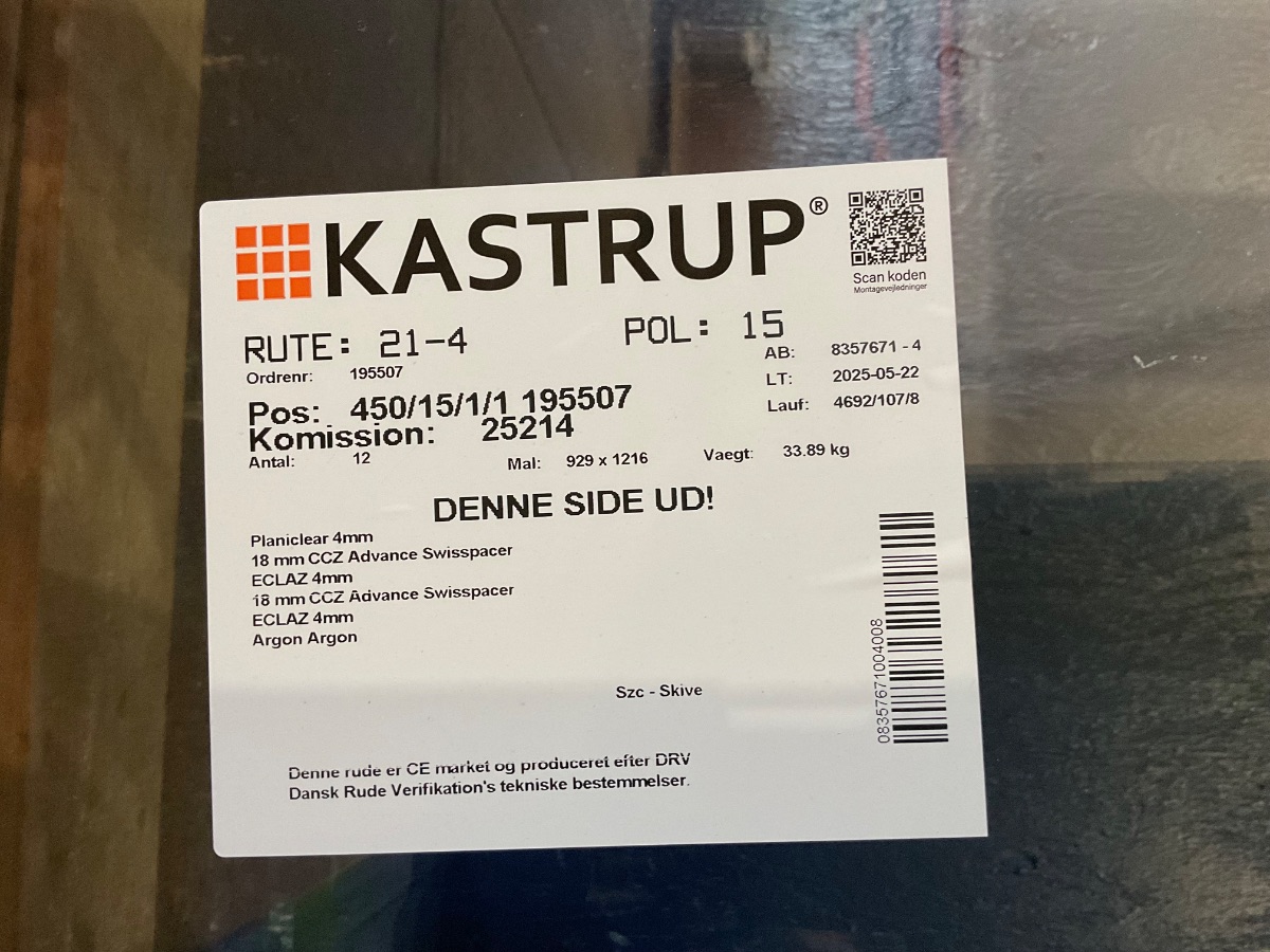 Ubrugt Kastrup Vindue, Alu/træ, 3 lag glas, topstyret, udluftning, mål: H136,9 B108,9 D12,1 Varenummer: 1831 1, 3 lags glas, Topstyret, Termovindue, Udluftning, Træ/Alu, Kastrup