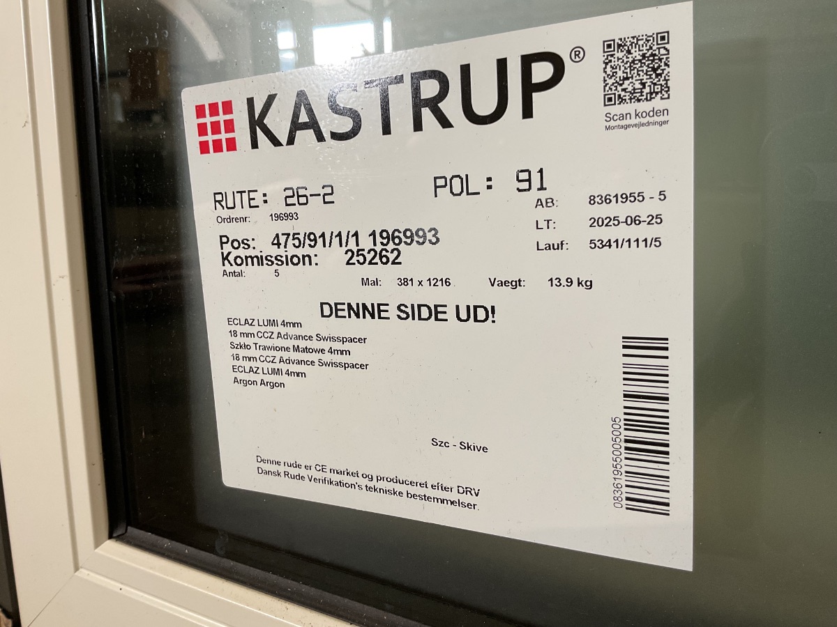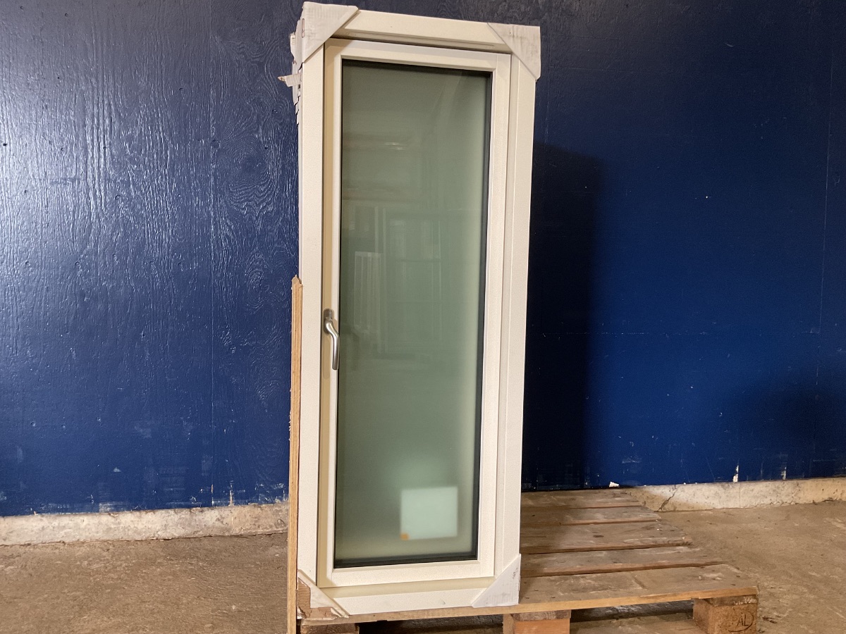 Ubrugt Kastrup Vindue, Alu/træ, 3 lag glas, sidehængt, udluftning, matteret, mål: H136,5 B53 D12,1 Varenummer: 1836 1, 3 lags glas, Sidehængt, Termovindue, Udluftning, Træ/Alu, Kastrup
