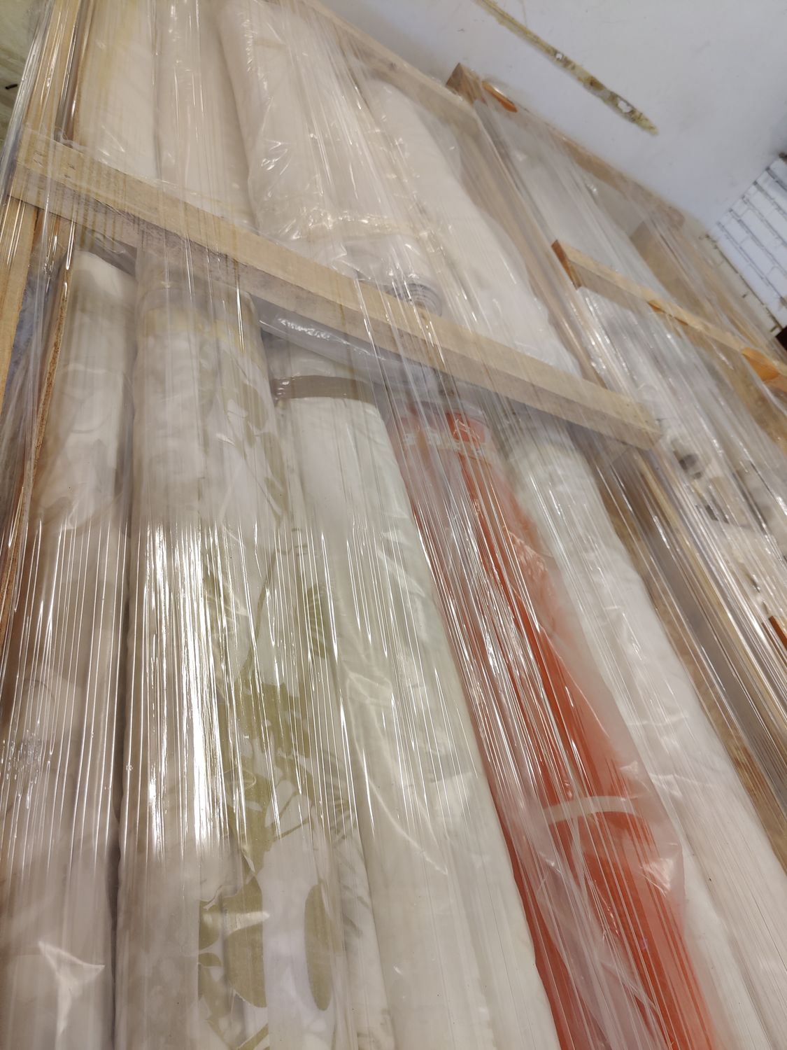 To store paller med forskellige tekstilrester. Der vil være polyester, uld og andre typer tekstil i blandt resterne. OBS Kan ikke benyttes til kommerciel patchwork grundet copyrights på printet.