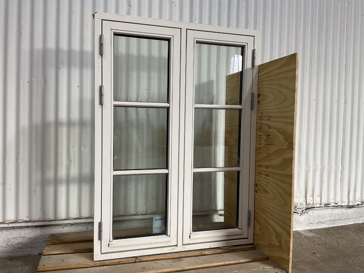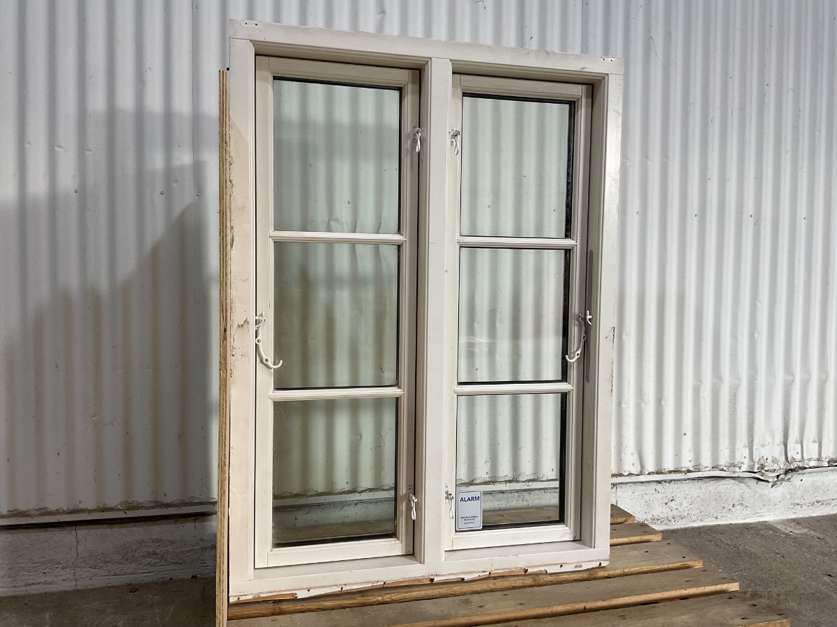 Brugt STM Bondehusvindue, træ/træ, 2 lag glas, sidehængt, udluftning, mål: H127,2 B93 D11,6 Varenummer: 1855 2, 2 lags glas, Sidehængt, Udluftning, Træ/Træ, STM