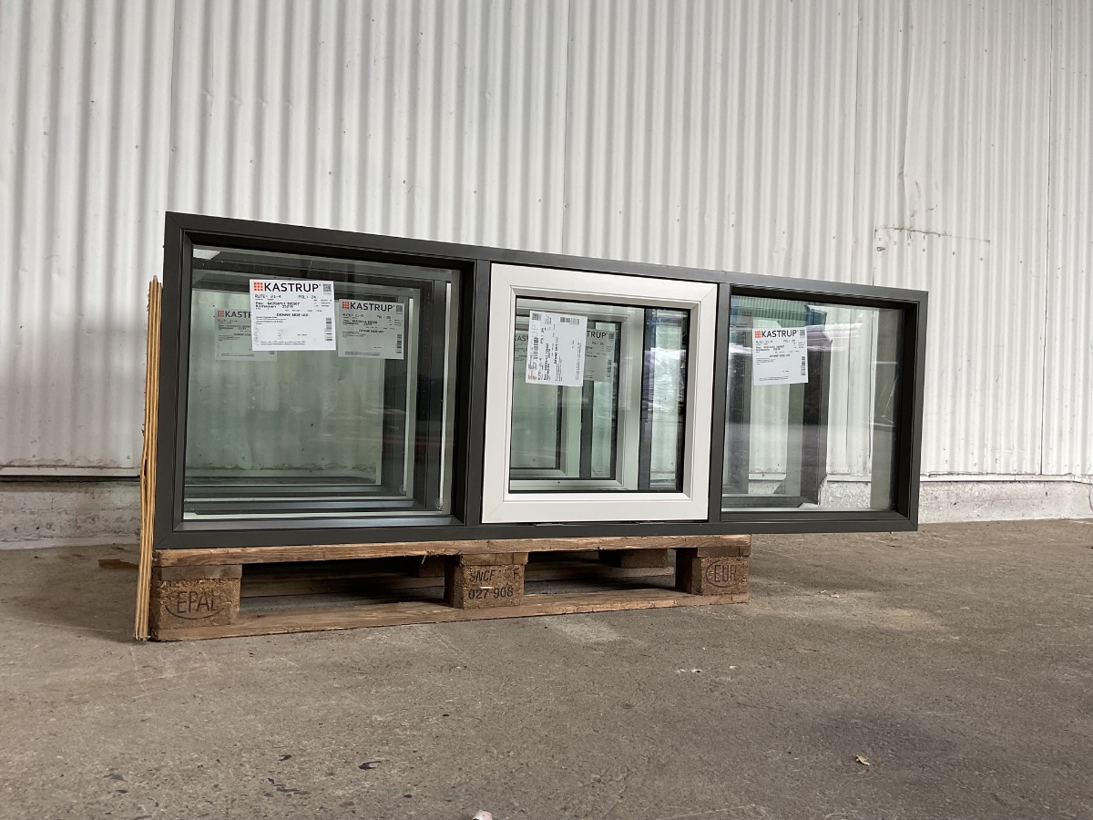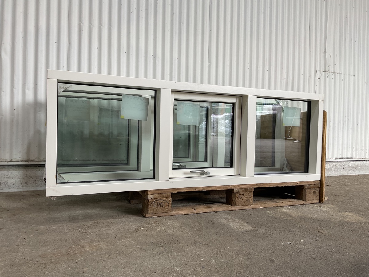 Ubrugt Kastrup Vinduesparti, Alu/træ, 2 lag glas, sikkerhedsglas, termo, topstyret/fastkarm, udluftning, mål: H56,5 B165,5 D12,1 Varenummer: 1880 3, 2 lags glas, Topstyret, Fastkarm, Termovindue, Udluftning, Træ/Alu, Kastrup
