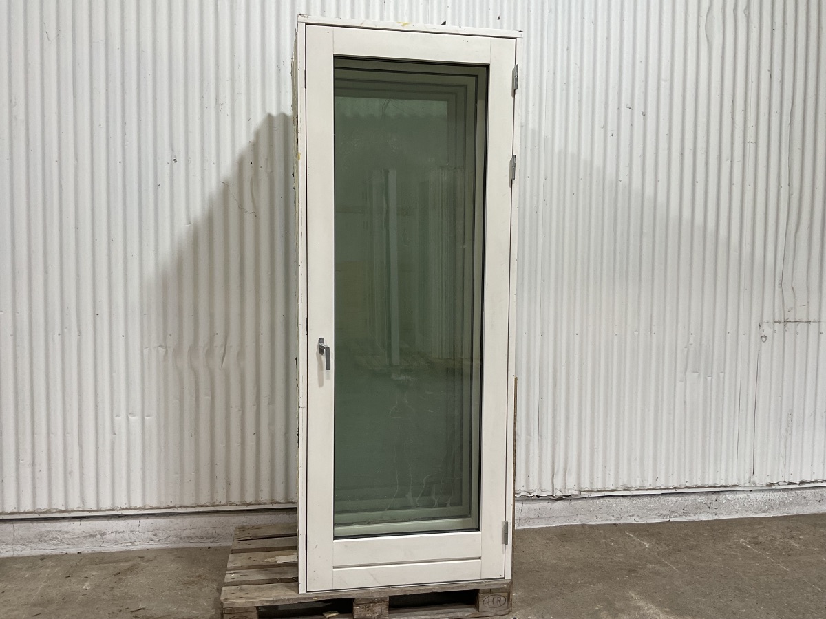 Brugt Totalt Døre & Vinduer - Terrassedør, træ/træ, 2 lag glas, højrehængt, indadgående, alubundstykke, mål: H226,8 B89 D11,6 Varenummer: 1882 Højrehængt, Indadgående, Enkelt, 2 lags glas, Alu, Træ/Træ, Andet