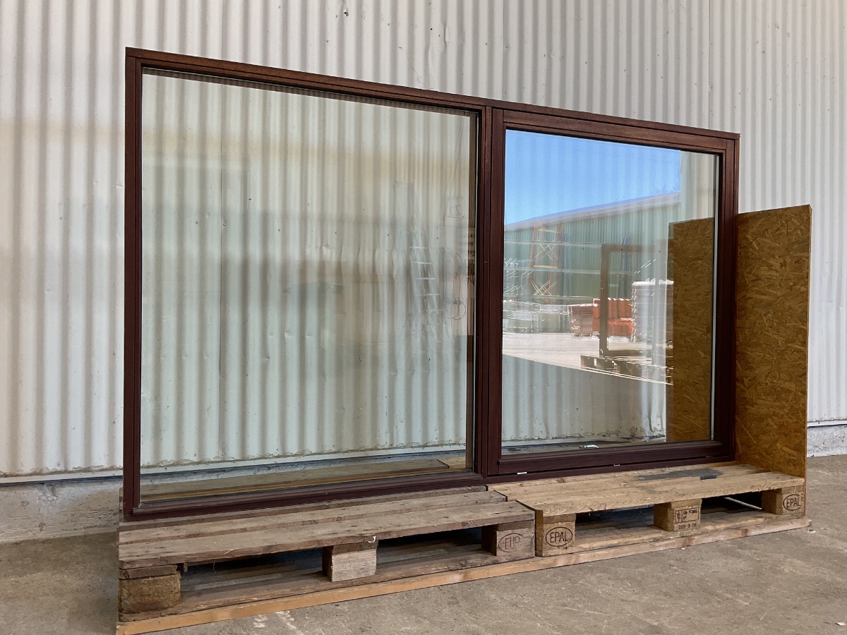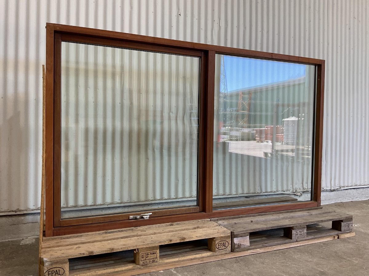 Brugt Mahogni Vinduesparti, træ/træ, 2 lag glas, topstyret/fastkarm, mål: H137,8 B237,3 D9,5 Varenummer: 1899 2, 2 lags glas, Topstyret, Fastkarm, Træ/Træ, Andet