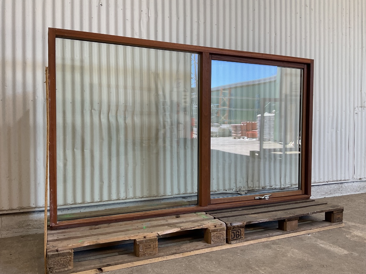 Brugt Mahogni Vinduesparti, træ/træ, 2 lag glas, topstyret/fastkarm, mål: H137,8 B237,3 D9,5 Varenummer: 1900 2, 2 lags glas, Topstyret, Fastkarm, Træ/Træ, Andet