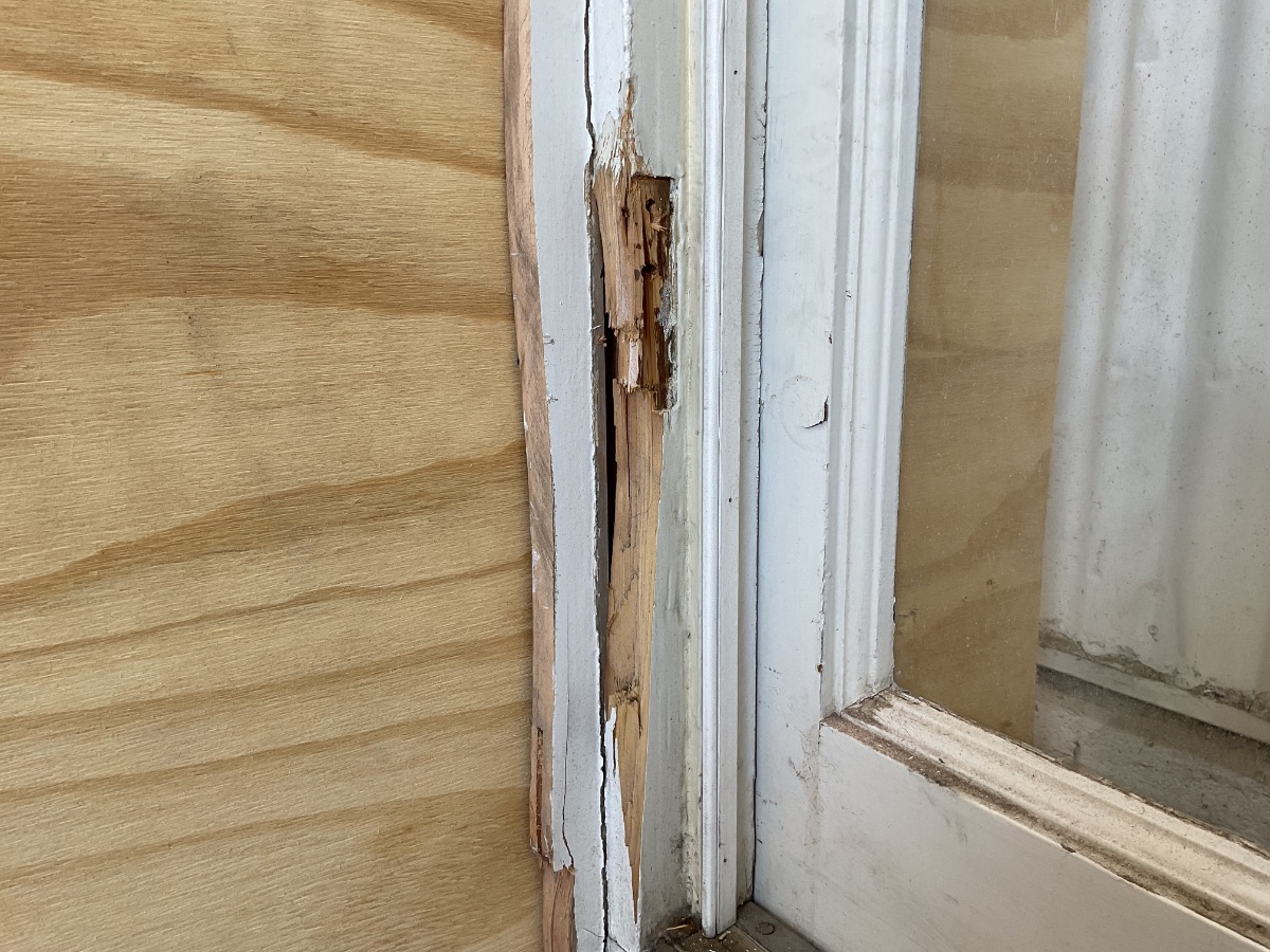 Brugt Ældre Sprosse Terrassedør, træ/træ, 1 lag glas, hængt på begge sider, udadgående, hårdttræsbundstykke, udluftning i den ene sprosse, terrassedøren har lidt større skader på indersiden, mål: H218 B148,5 D11,8 Varenummer: 1904 Højrehængt, Venstrehængt, Udadgående, Dobbelt, 1 lags glas, Hårdt træ, Træ/Træ, Andet