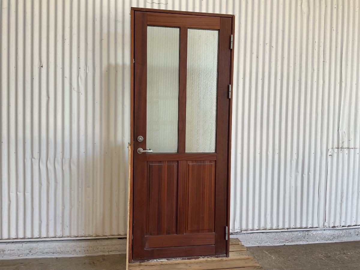 Brugt Mahogni Yderdør, træ/træ, 2 lag glas, højrehængt, indadgående, hårdttræsbundstykke, mål: H229,8 B94,8 D12,3 Varenummer: 1906 Højrehængt, Indadgående, Enkelt, 2 lags glas, Hårdt træ, Træ/Træ, Andet