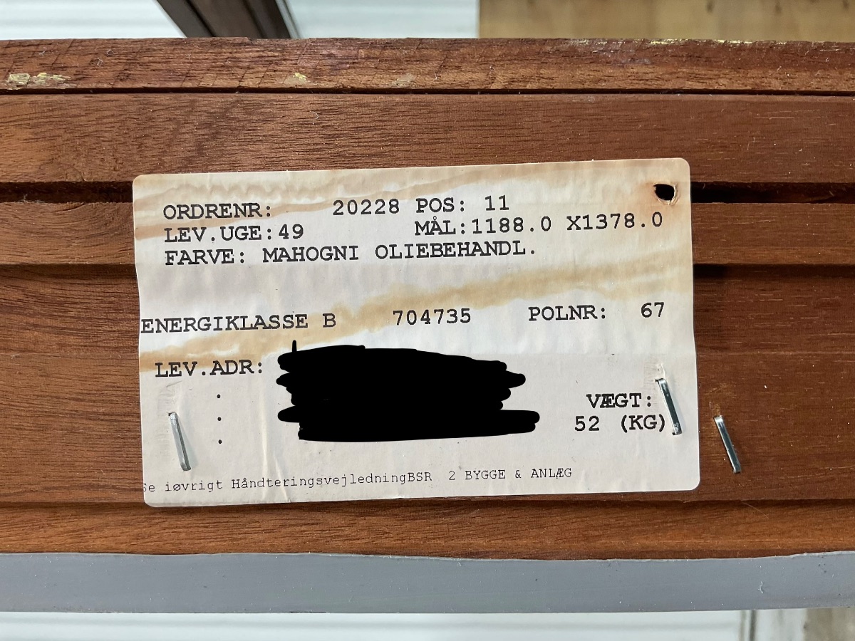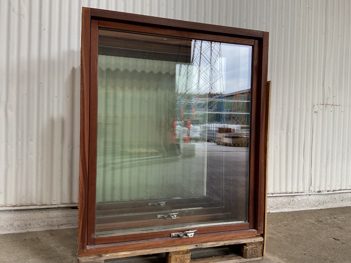 Brugt Mahogni Vindue, træ/træ, 2 lag glas, topstyret, mål: H137,8 B118,8 D9,5 Varenummer: 1907 1, 2 lags glas, Topstyret, Træ/Træ, Andet