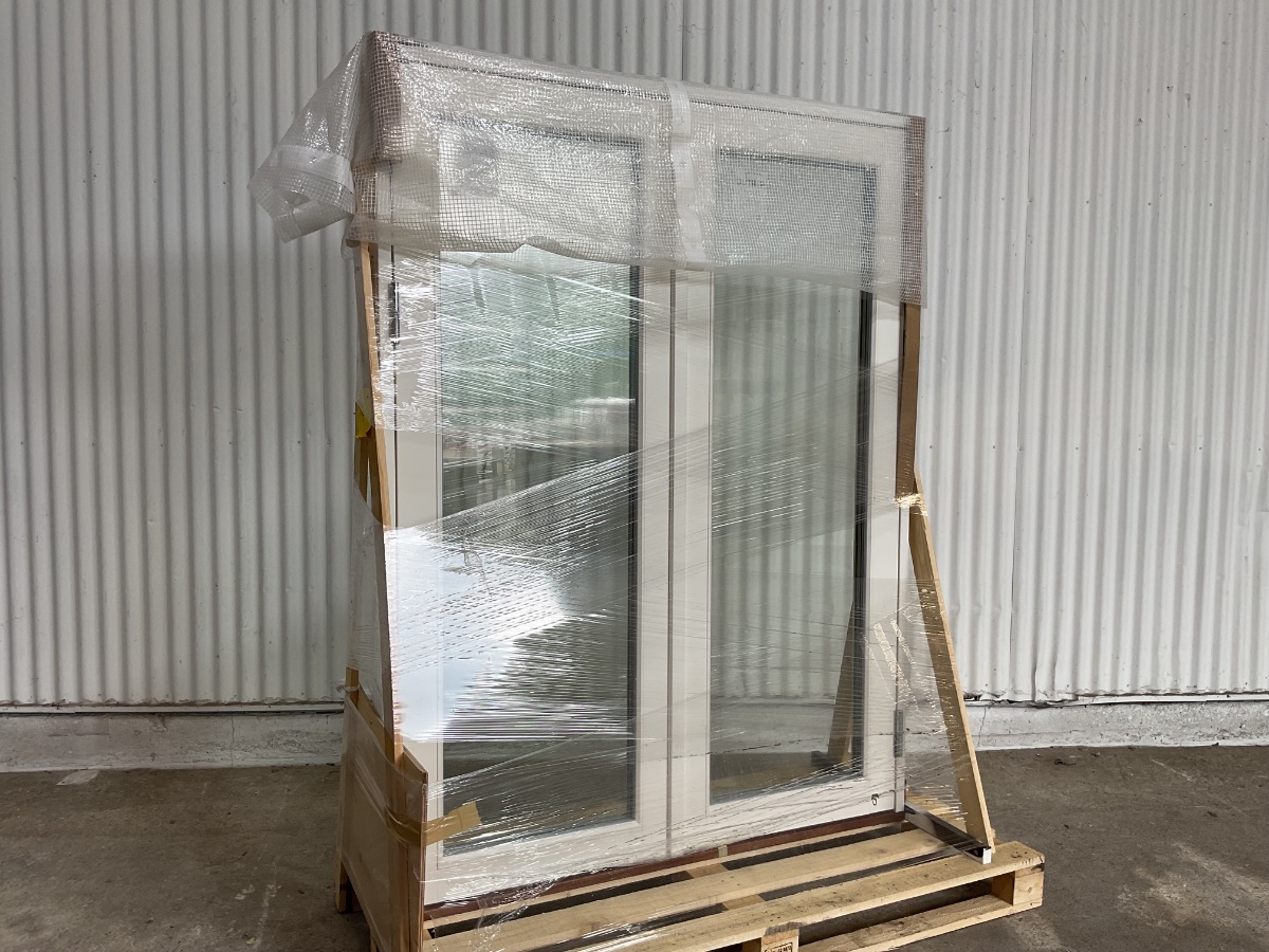Helt ny Outrup Dobbelt Terrassedør, træ/træ, 3 lag glas, hængt på begge sider, hårdttræsbundstykke, mål: H187,8 B141,8 D11,7 Varenummer: 1915 Højrehængt, Venstrehængt, Udadgående, Dobbelt, 3 lags glas, Hårdt træ, Termo, Træ/Træ, Outrup