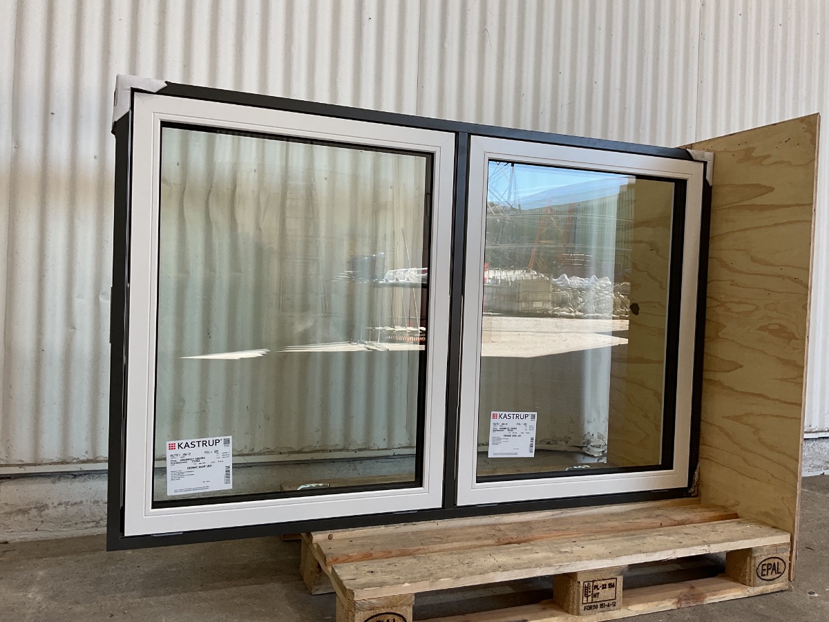 Ubrugt Kastrup Vinduesparti, Alu/træ, 3 lag glas, topstyret/topstyret, udluftning, mål: H104,8 B165,7 D12,1 Varenummer: 1931 2, 3 lags glas, Topstyret, Termovindue, Udluftning, Træ/Alu, Kastrup