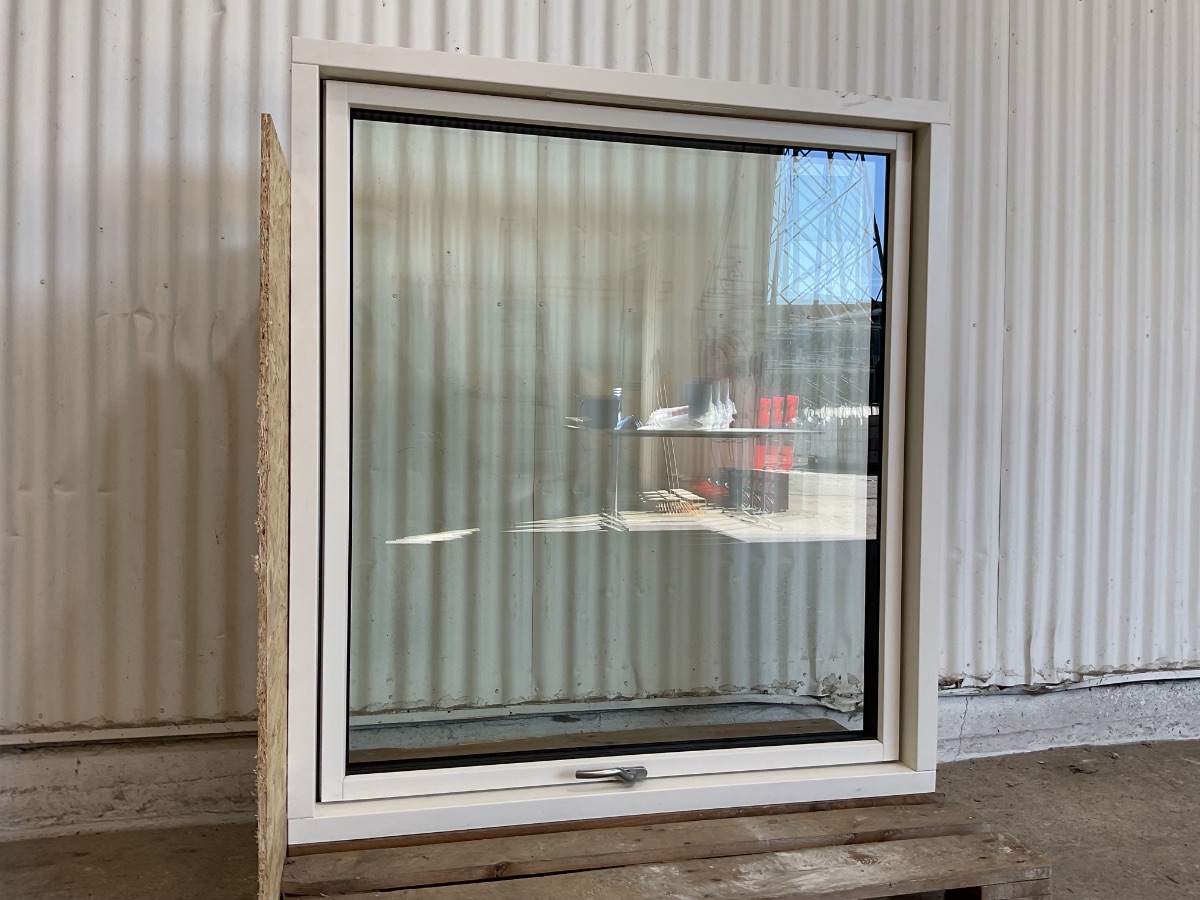 Ubrugt Kastrup Vindue, Alu/træ, 3 lag glas, topstyret, udluftning, har lille skade på indersiden, mål: H130,3 B118,2 D12,1 Varenummer: 1932 1, 3 lags glas, Topstyret, Termovindue, Udluftning, Træ/Alu, Kastrup