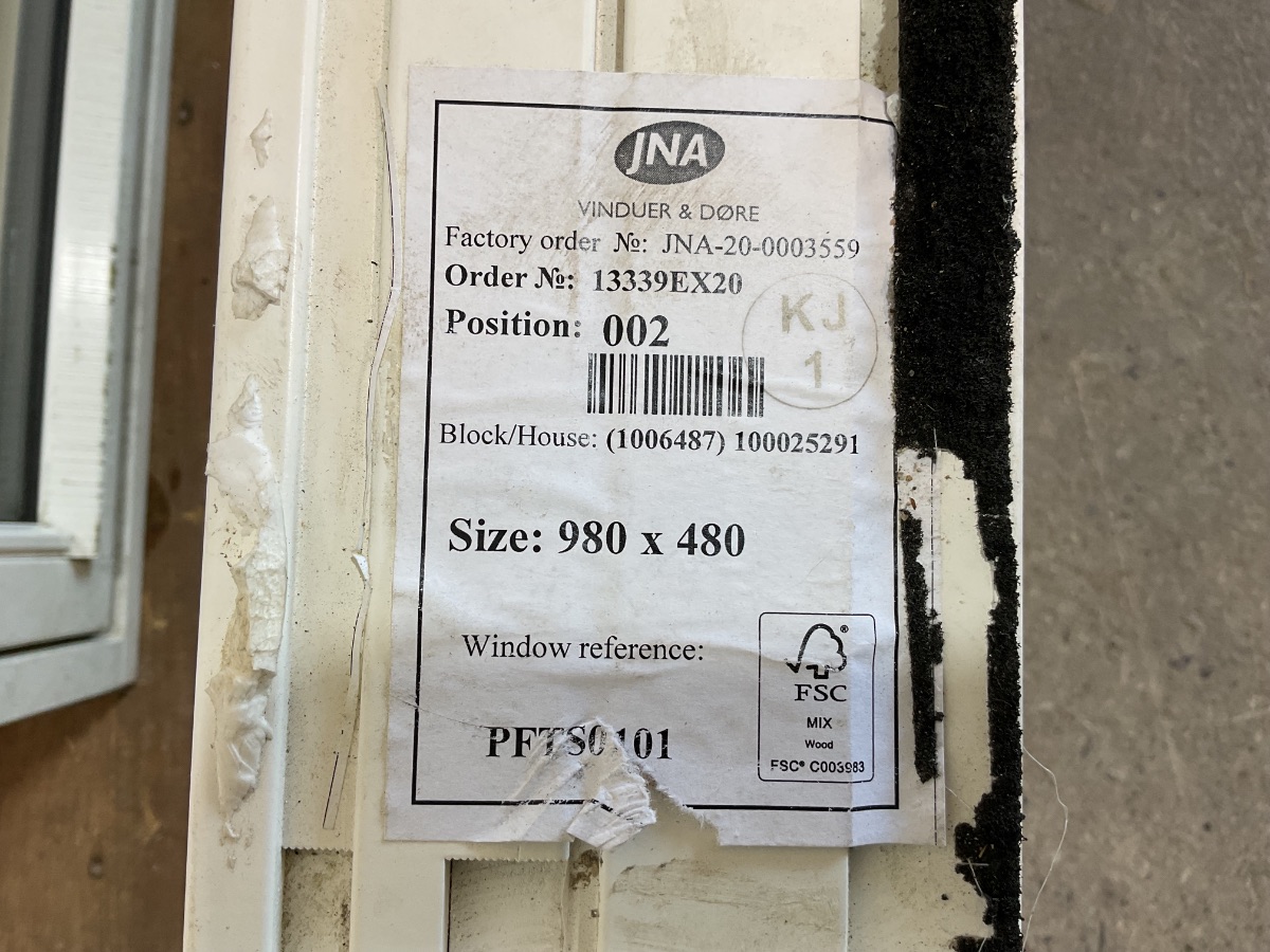 Brugt JNA Vindue, træ/træ, 2 lag glas, topstyret, udluftning, mål: H48 B98 D11,2 Varenummer: 1943 1, 2 lags glas, Topstyret, Udluftning, Træ/Træ, Andet
