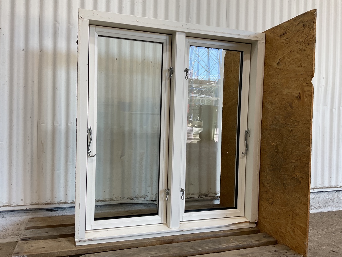 Brugt Kipa Vinduesparti, træ/træ, 2 lag glas, sidehængt, har en lille skade på indersiden, mål: H105,4 B95 D11,5 Varenummer: 1946 2, 2 lags glas, Sidehængt, Træ/Træ, Andet