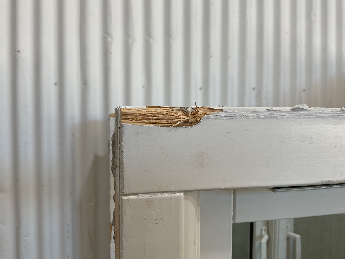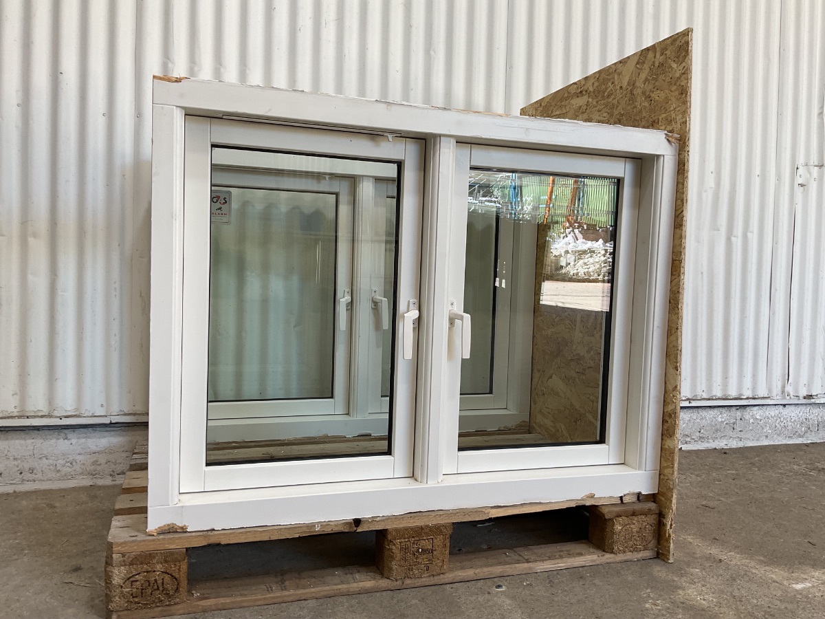 Brugt Jægerspris Vinduesparti, træ/træ, 2 lag glas, sidehængt, udluftning, vinduet har lidt hakker og en revne på inder karmen, mål: H84,2 B113 D11,5 Varenummer: 1950 2, 2 lags glas, Sidehængt, Udluftning, Træ/Træ, Andet