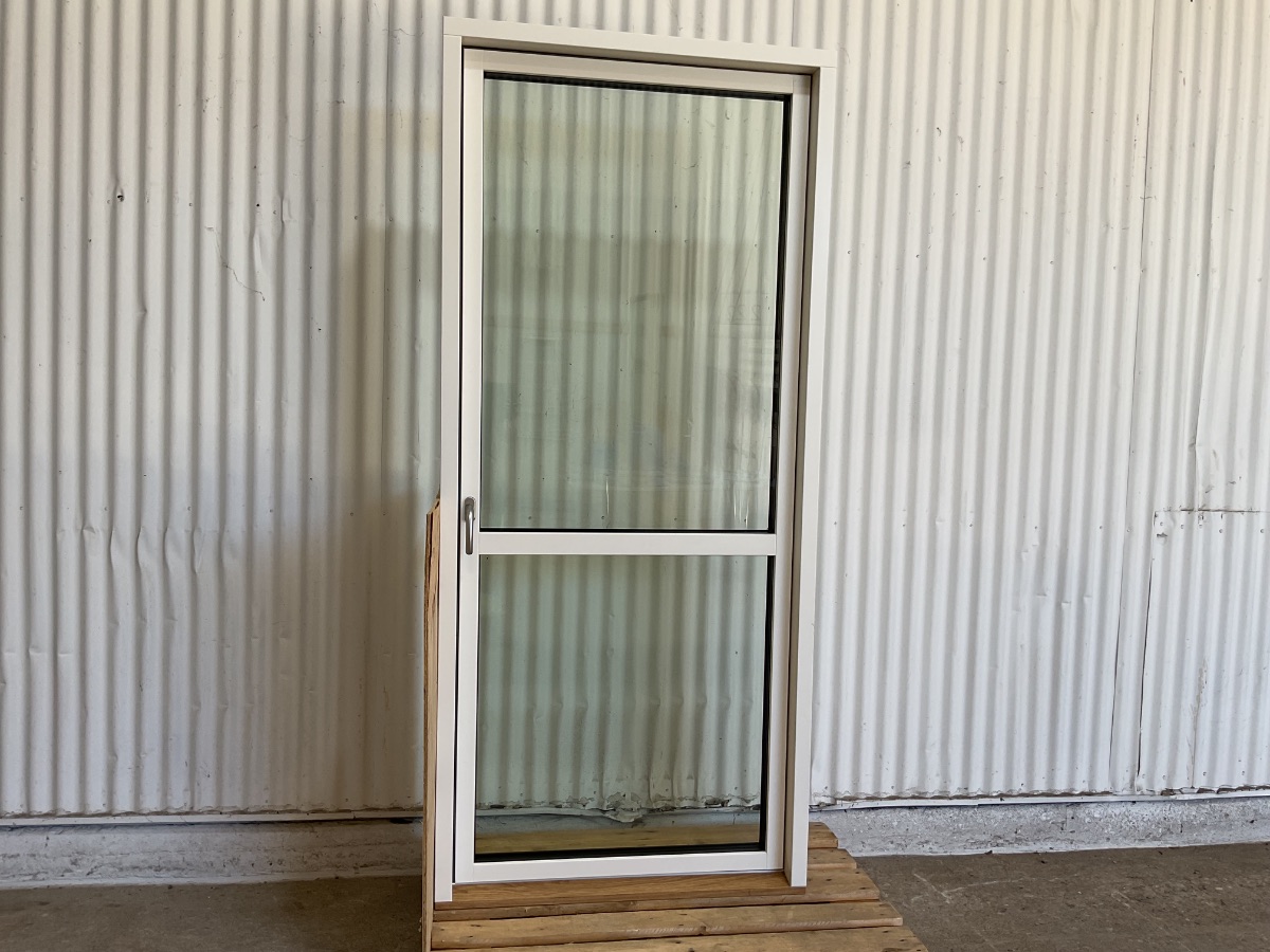 Ubrugt Vindunor Terrassedør, Alu/træ, 3 lag glas, venstrehængt, udadgående, hårdttræsbundstykke, mål: H221,3 B98,8 D12,8 Varenummer: 1963 Venstrehængt, Udadgående, Enkelt, 3 lags glas, Hårdt træ, Termo, Træ/Alu, Andet