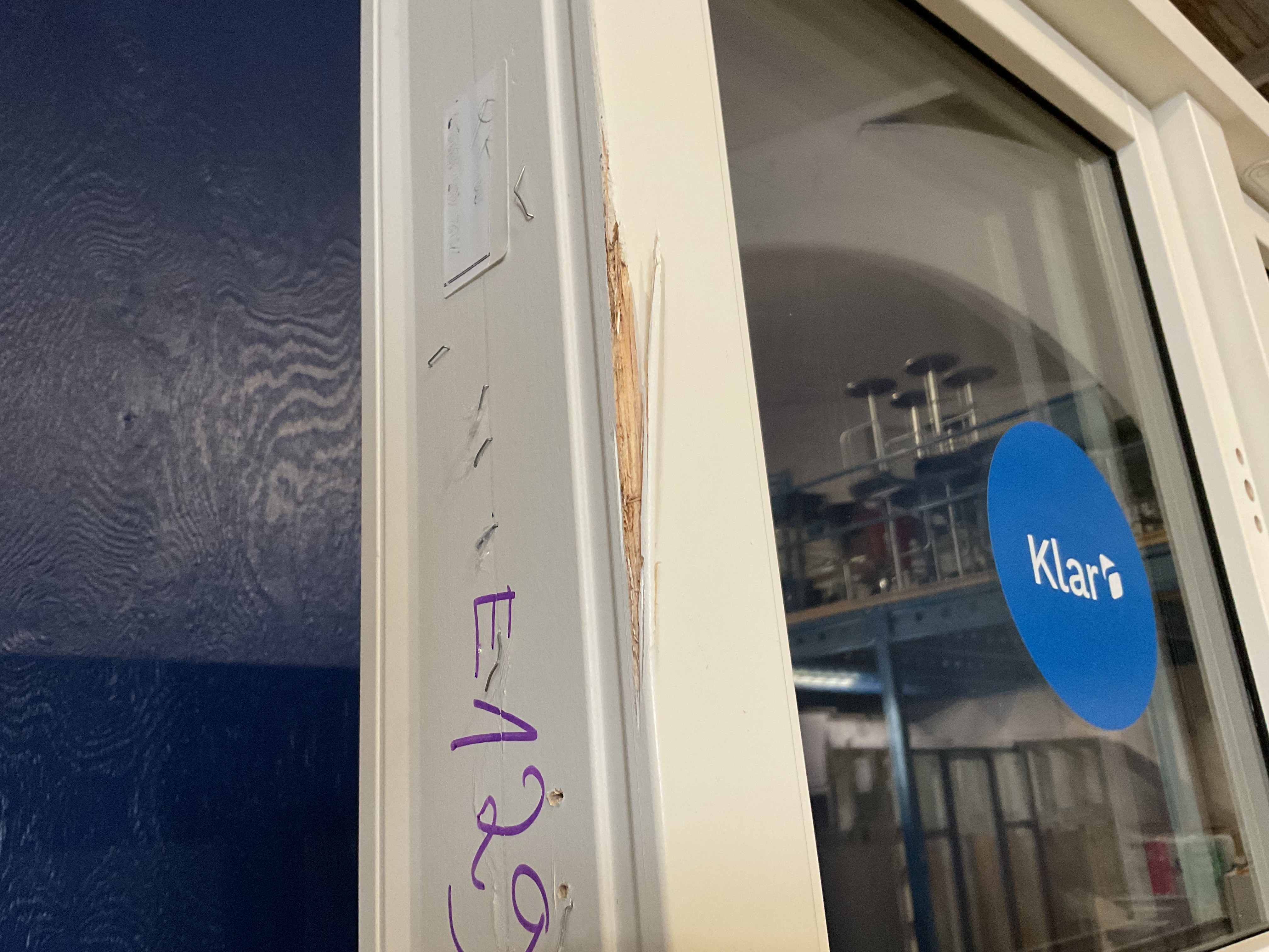 Vinduet har en skade på indersiden, kan ses på billedet Varenummer: 130 , 2, 3 lags glas, Sidehængt, Udluftning, Termovindue, Træ/Alu