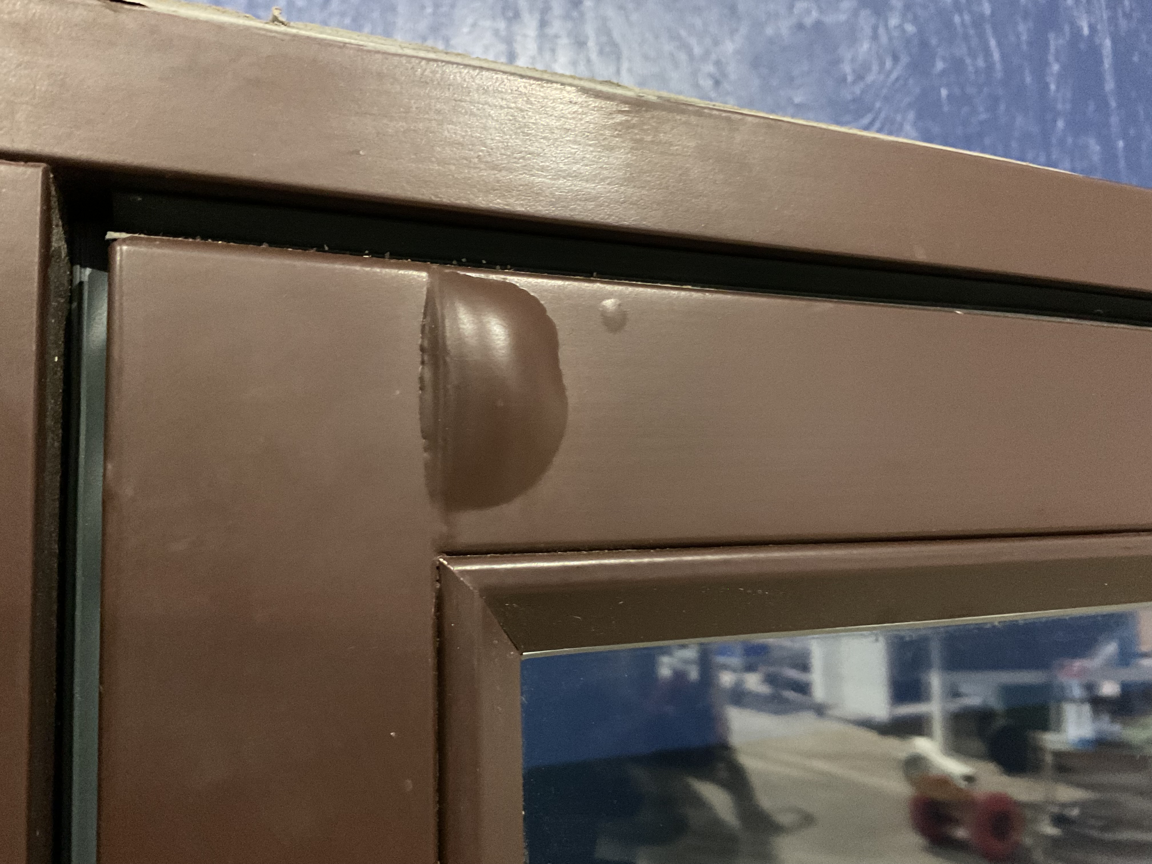 Vinduet har en luftboble undre malingen, kan ses på billedet Varenummer: 162 , 1, 3 lags glas, Topstyret, Udluftning, Termovindue, Træ/Træ, Rationel