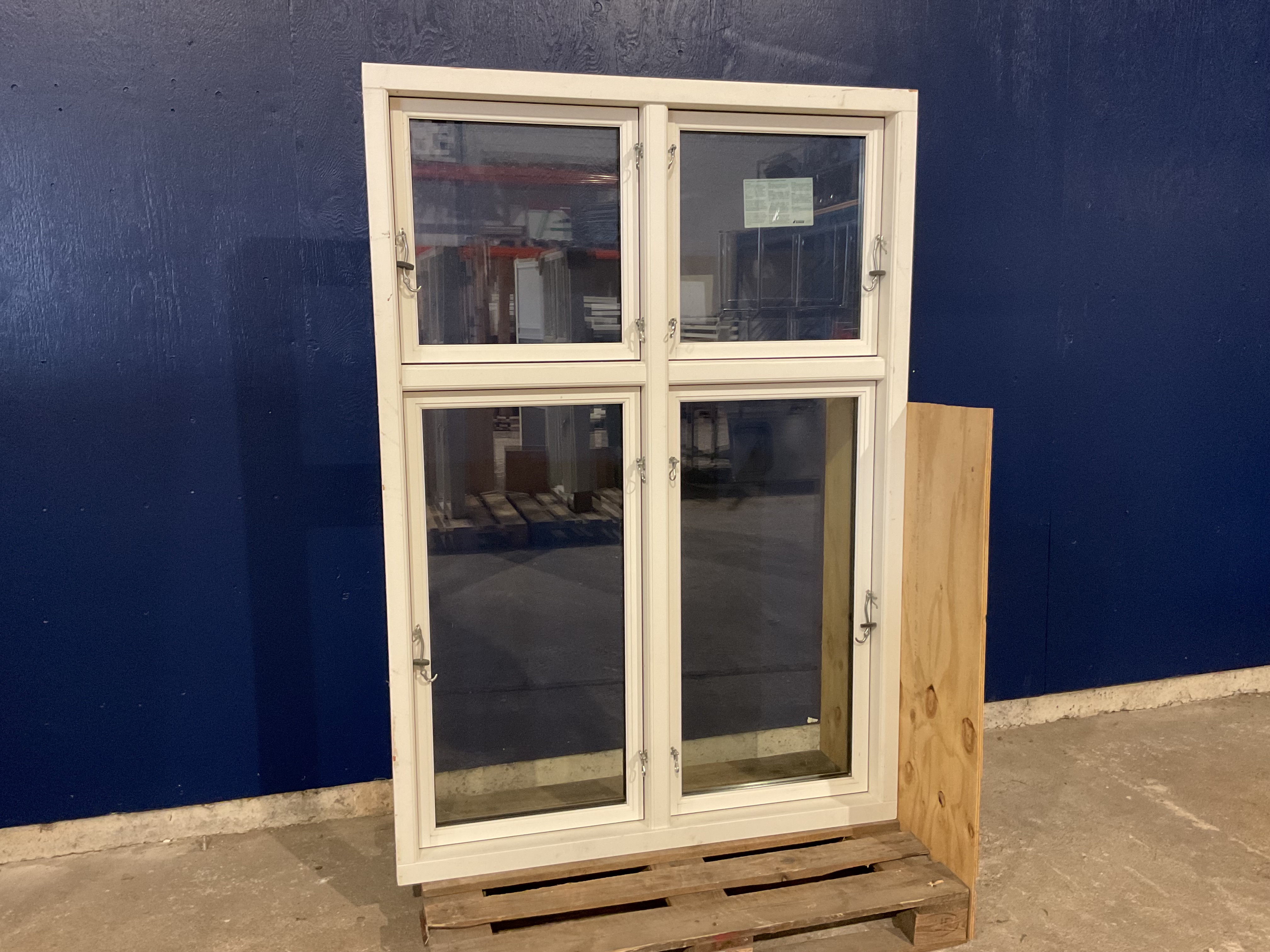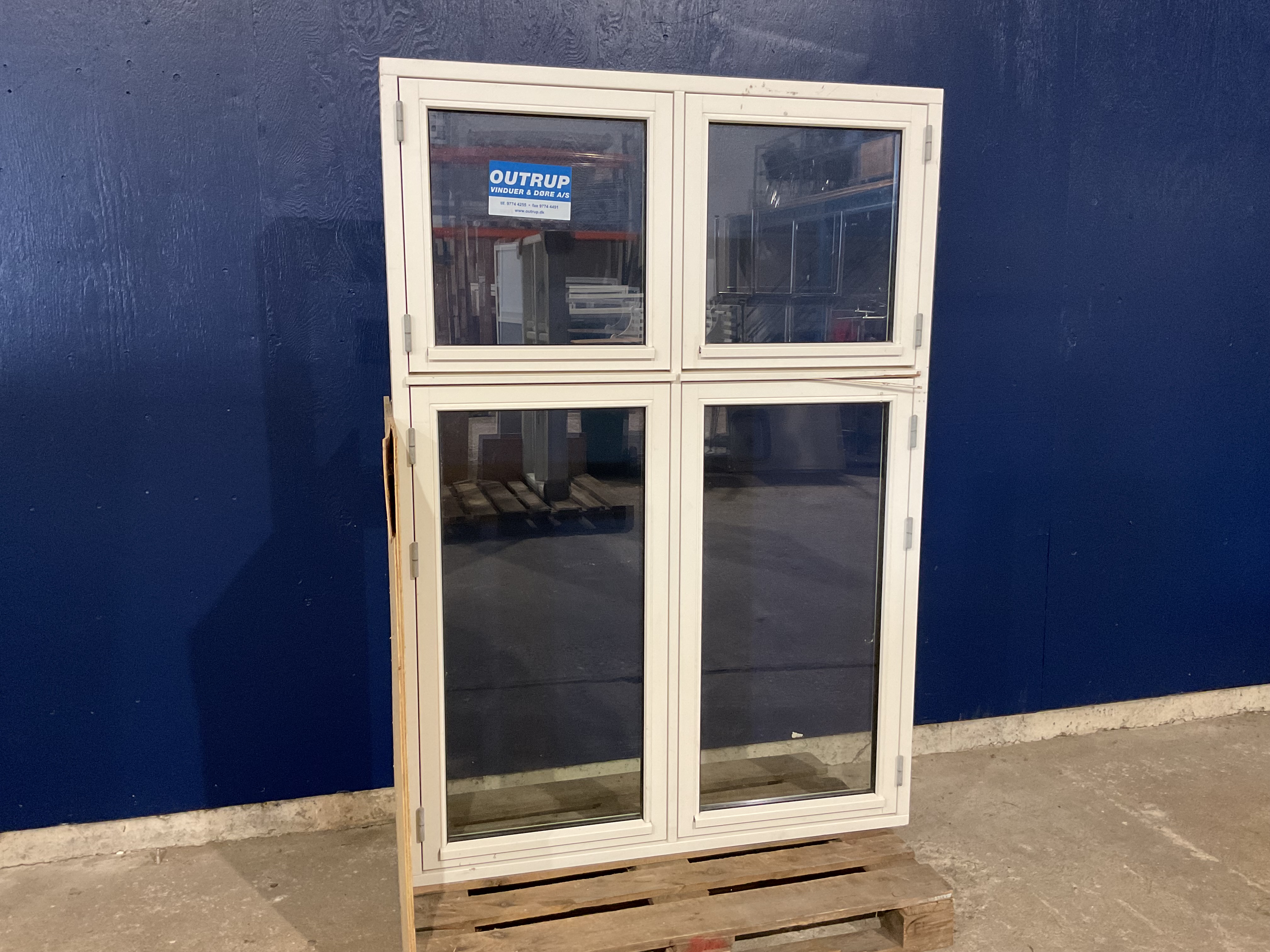 Vinduet har aldrig været i brug men har en mindre skade, kan ses på billedet Varenummer: 200 , 2 lags glas, Sidehængt, Træ/Træ, Outrup, 4