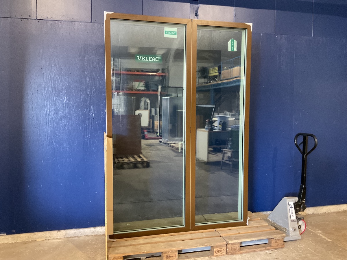 Ubrugt Velfac terrassedør m. Sideparti, Alu/Træ, 3 Lag glas, Termo, Alubundstykke Varenummer: 357 Termovindue, 3 lags glas, 1, Fastkarm, Venstrehængt, Udadgående, Enkelt, Sideparti, Alu, Træ/Alu, Velfac