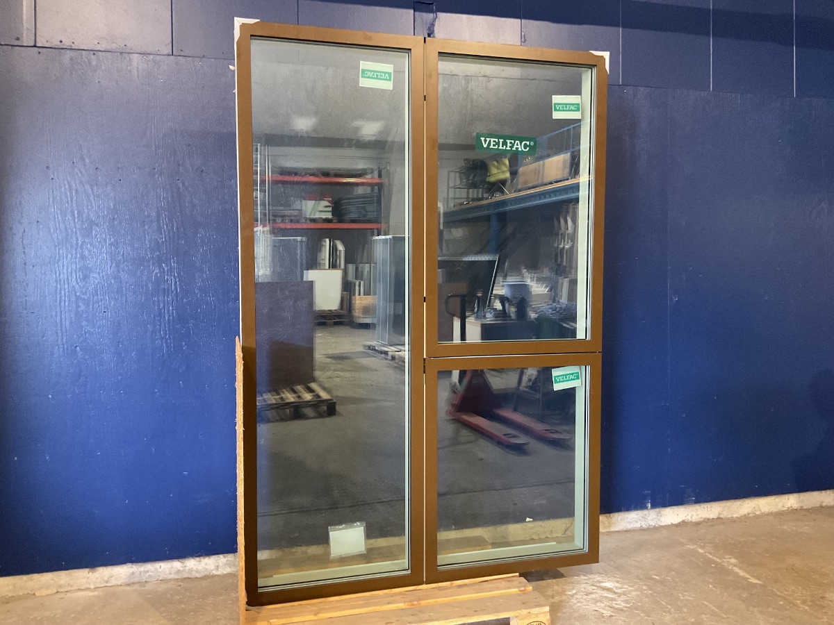 Ubrugt Velfac vinduesparti, Alu/Træ, 3 lag glas, Termo, Sidehængt/Fastkarm Varenummer: 358 3 lags glas, Fastkarm, Venstrehængt, Udadgående, Enkelt, 2, Sidehængt, Termovindue, Træ/Alu, Velfac