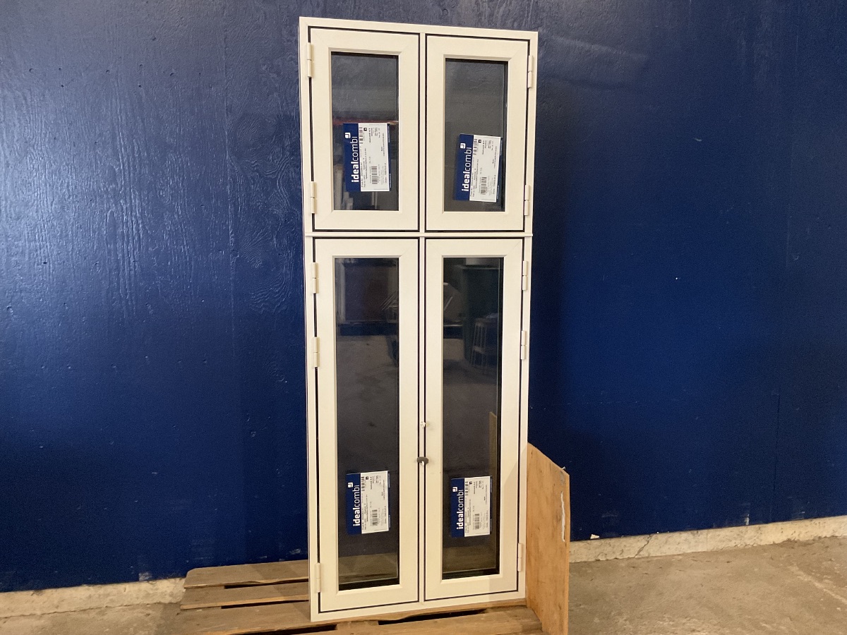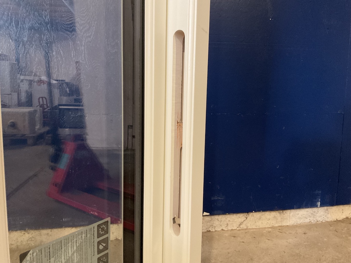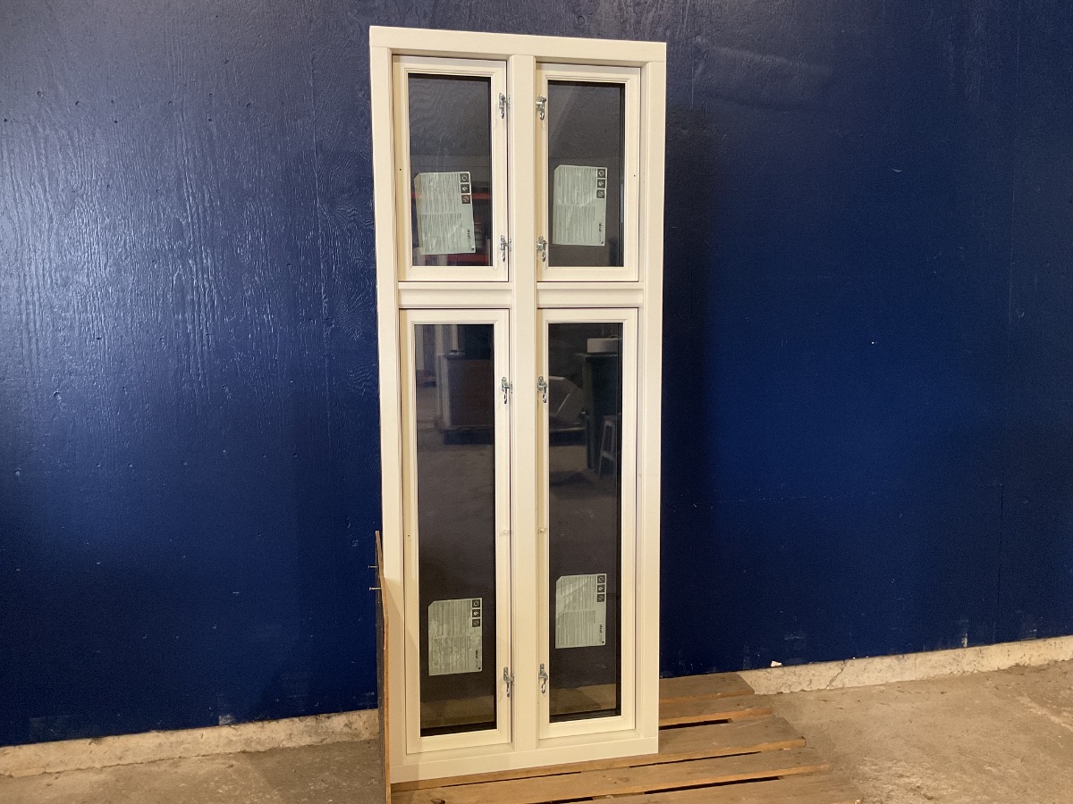 Ubrugt Idealcombi Dannebrogsvindue, vinduet mangler kroge og udluftning, kan ses på billedet Varenummer: 641 3 lags glas, Sidehængt, Udluftning, Termovindue, Træ/Alu, IdealCombi, 4