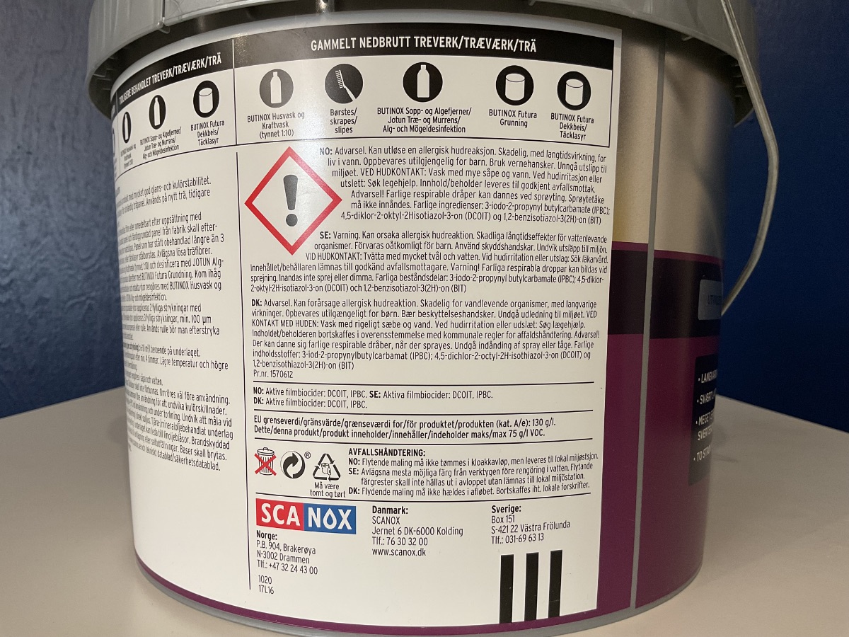 Ny Hvid Butinox Futura træmaling | 9 L, udendørs brug, dækkende træbeskyttelse info om malingen kan ses på billeder Varenummer: 670 Hvid
