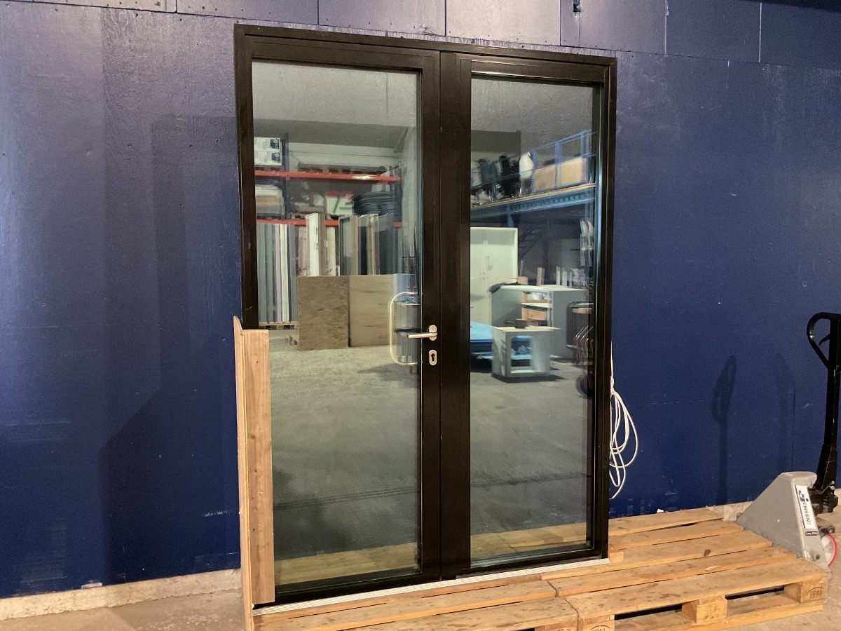 Butiksdør i alu/plast med Pilkington sikkerhedsglas (H: 216,5 x B: 157 cm) Solid brugt butiksdør med dobbelte fløje og Pilkington Hansen hærdet sikkerhedsglas, som kan ses på billederne. Døren er fremstillet i en kombination af aluminium og plast, hvilket giver både styrke og minimal vedligeholdelse. Dobbelt dør med store glaspartier for optimalt lysindfald 3-lags termo-sikkerhedsglas (EN 12150) – giver både isolering og høj sikkerhed Venstre- og højrehængt, indadgående Moderne greb inkluderet (låsecylinder medfølger ikke) Perfekt løsning til butikslokaler, kontorer eller andre erhvervslokaler, hvor der ønskes en præsentabel indgangsdør med høj sikkerhed og robust kvalitet. Varenummer: 703 Venstrehængt, Højrehængt, Indadgående, Dobbelt, 3 lags glas, Alu, Termo, Plast/Alu