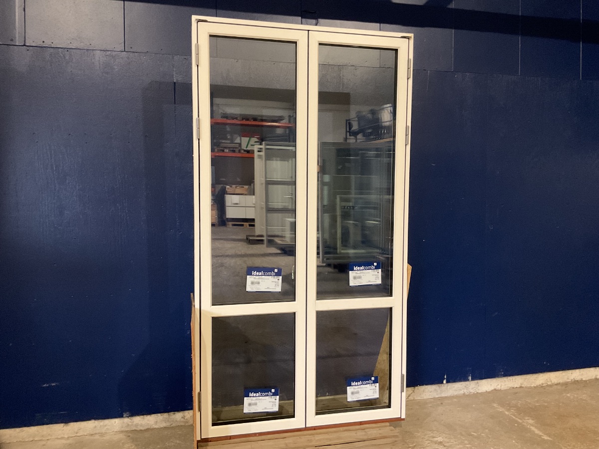 Ubrugt Idealcombi dobbelt terrassedør, udluftning, glasset er fra 31-05-2022, mål kan ses på billedet Varenummer: 776 Venstrehængt, Højrehængt, Udadgående, Dobbelt, 3 lags glas, Hårdt træ, Termo, Træ/Alu, IdealCombi