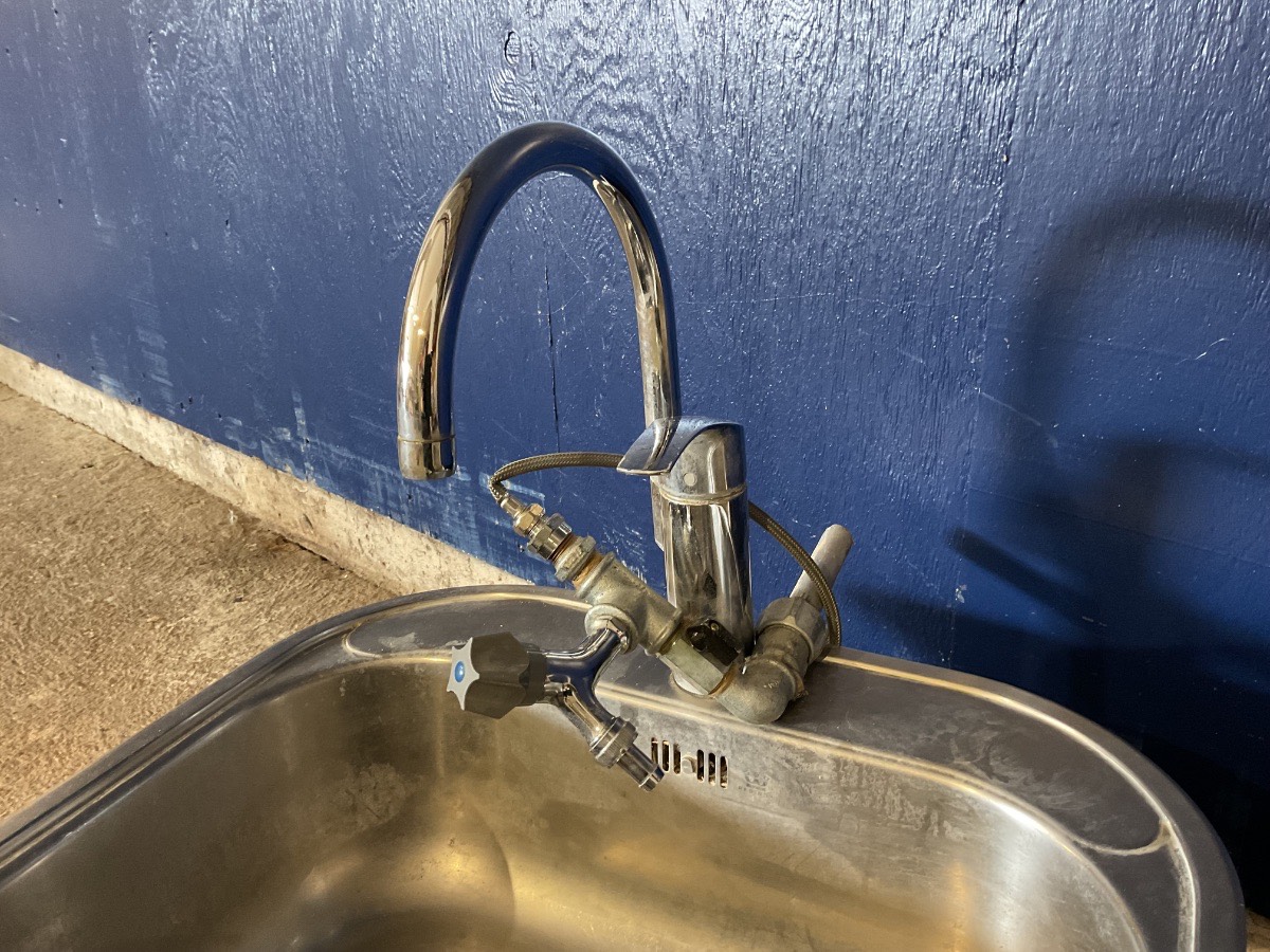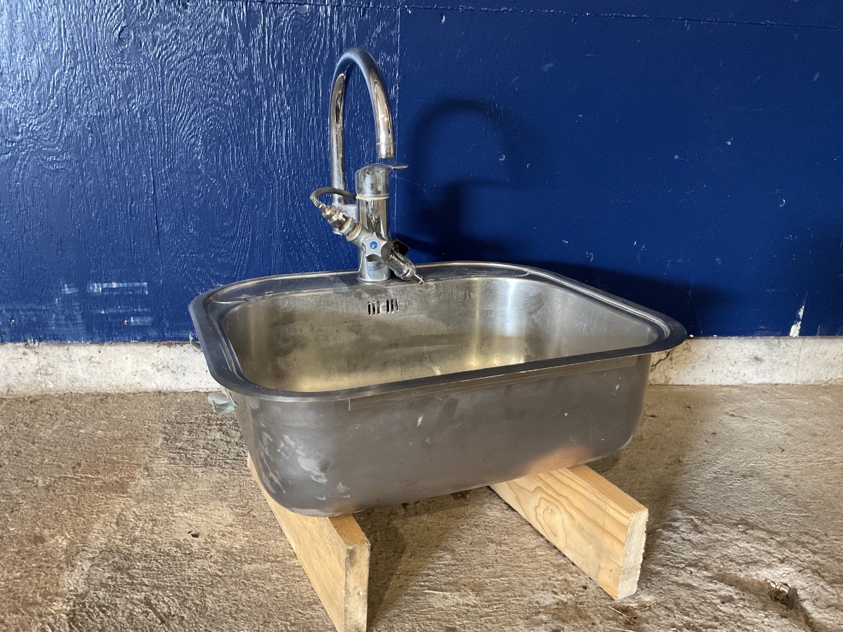 Brugt Stålvask med 2 armatur Varenummer: 954