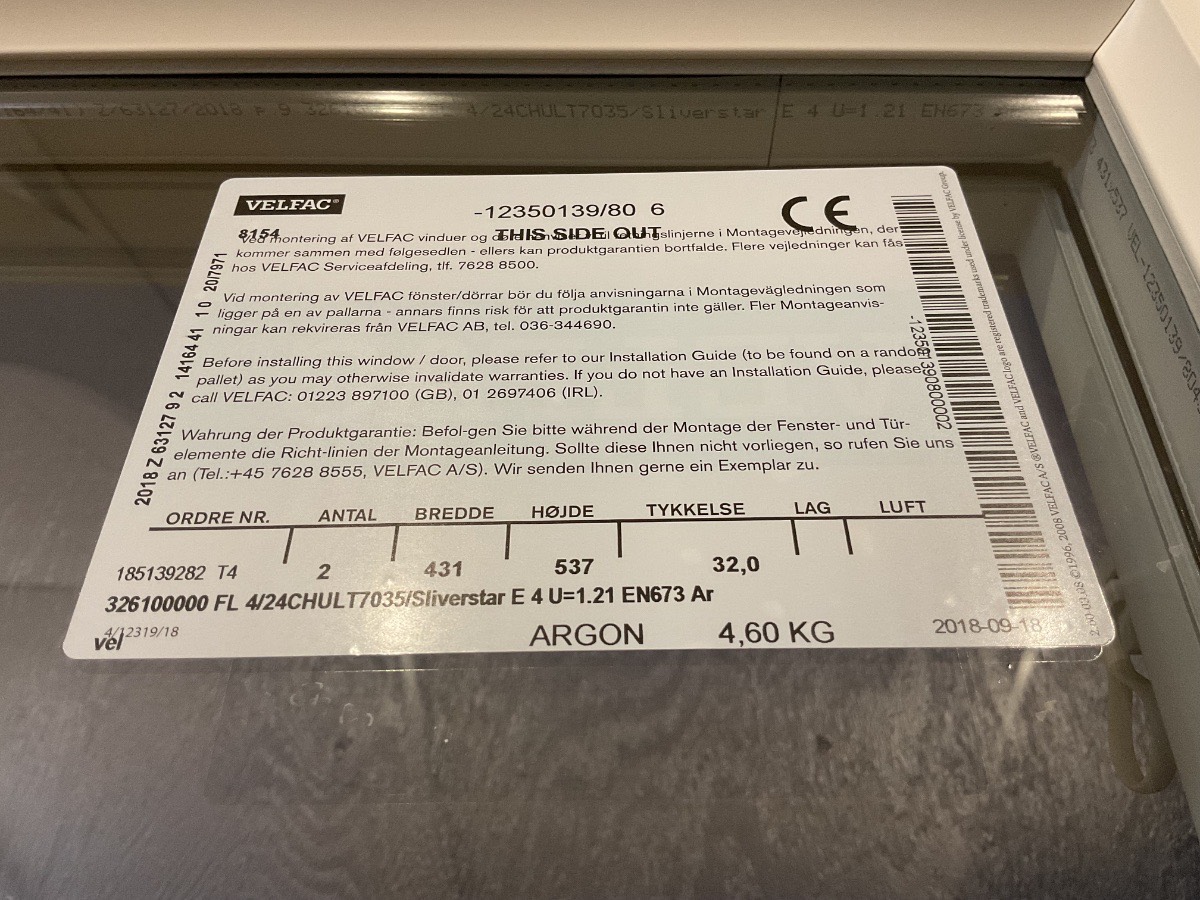 Ubrugt Velfac Dannebrogsvindue, mål og andre oplysninger kan ses på billeder Varenummer: 1003 4, 2 lags glas, Sidehængt, Termovindue, Træ/Alu, Velfac