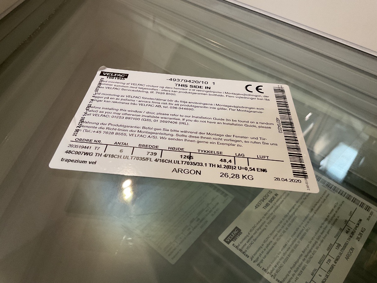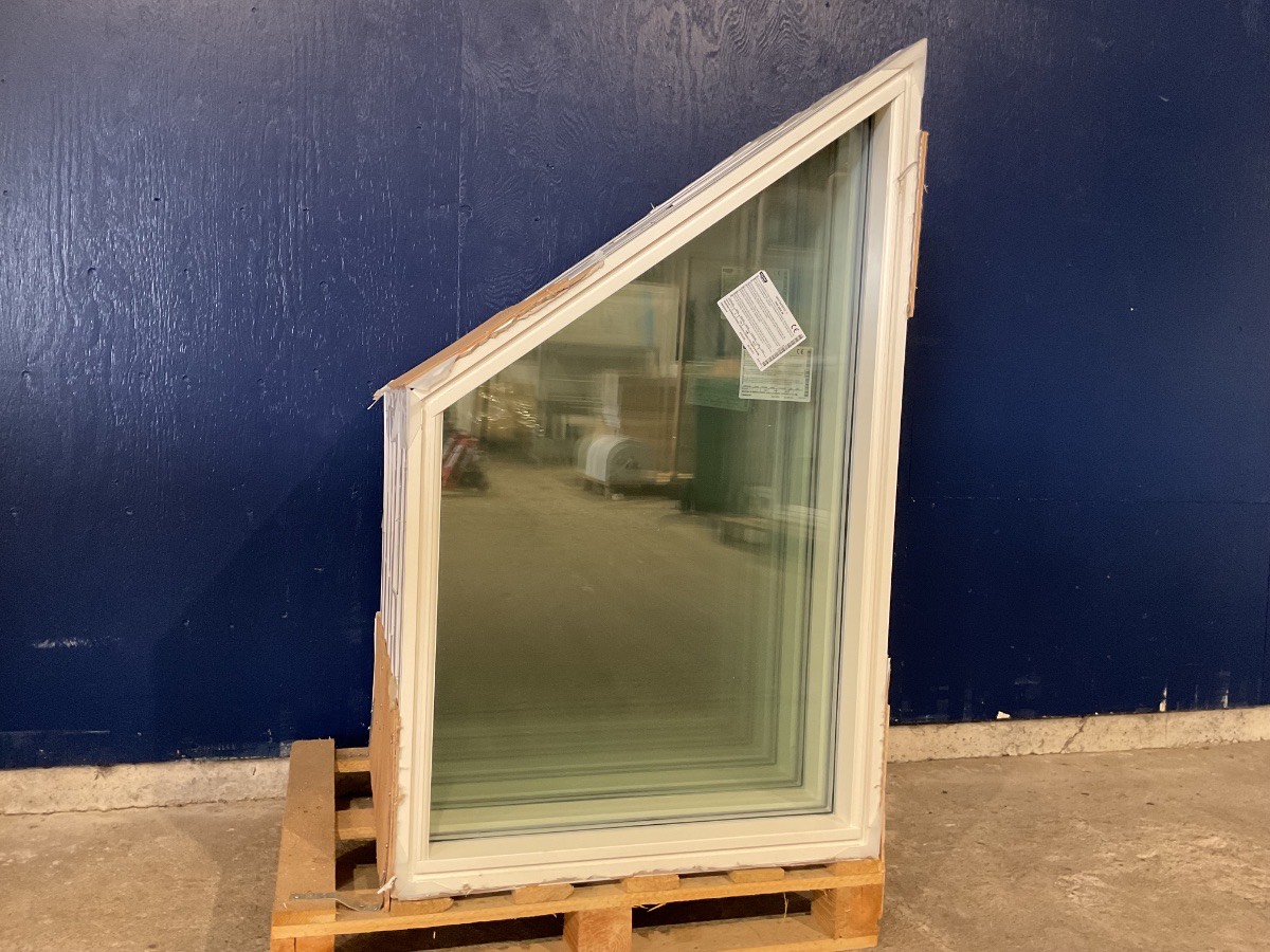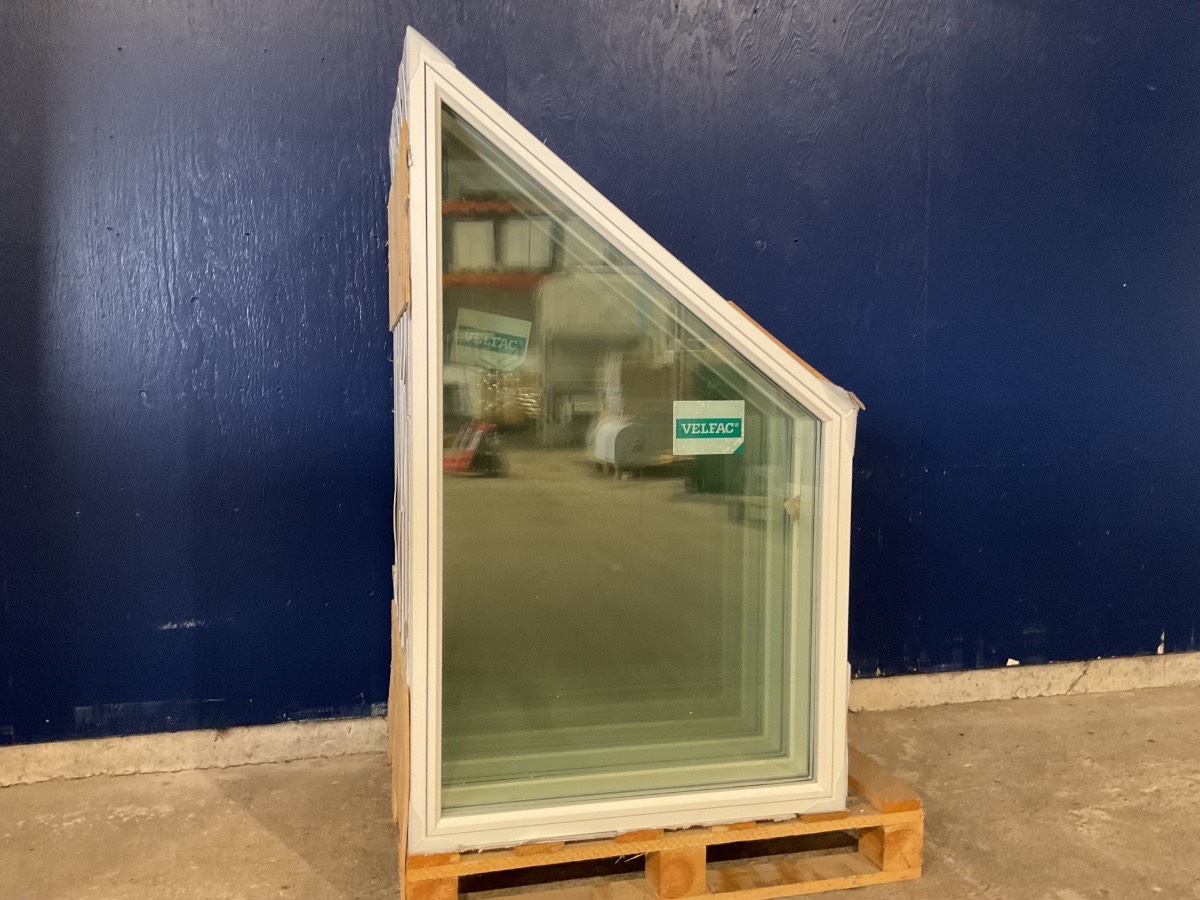 Ubrugt Velfac gavlvindue i træ/alu med fast karm og 3-lags energiruder. Vinduet har ca. 37° hældning og giver effektiv isolering med godt lysindfald. Stand 5/5 – et energieffektivt kvalitetsvindue. Varenummer: 1050 1, 3 lags glas, Fastkarm, Termovindue, Træ/Alu, Velfac