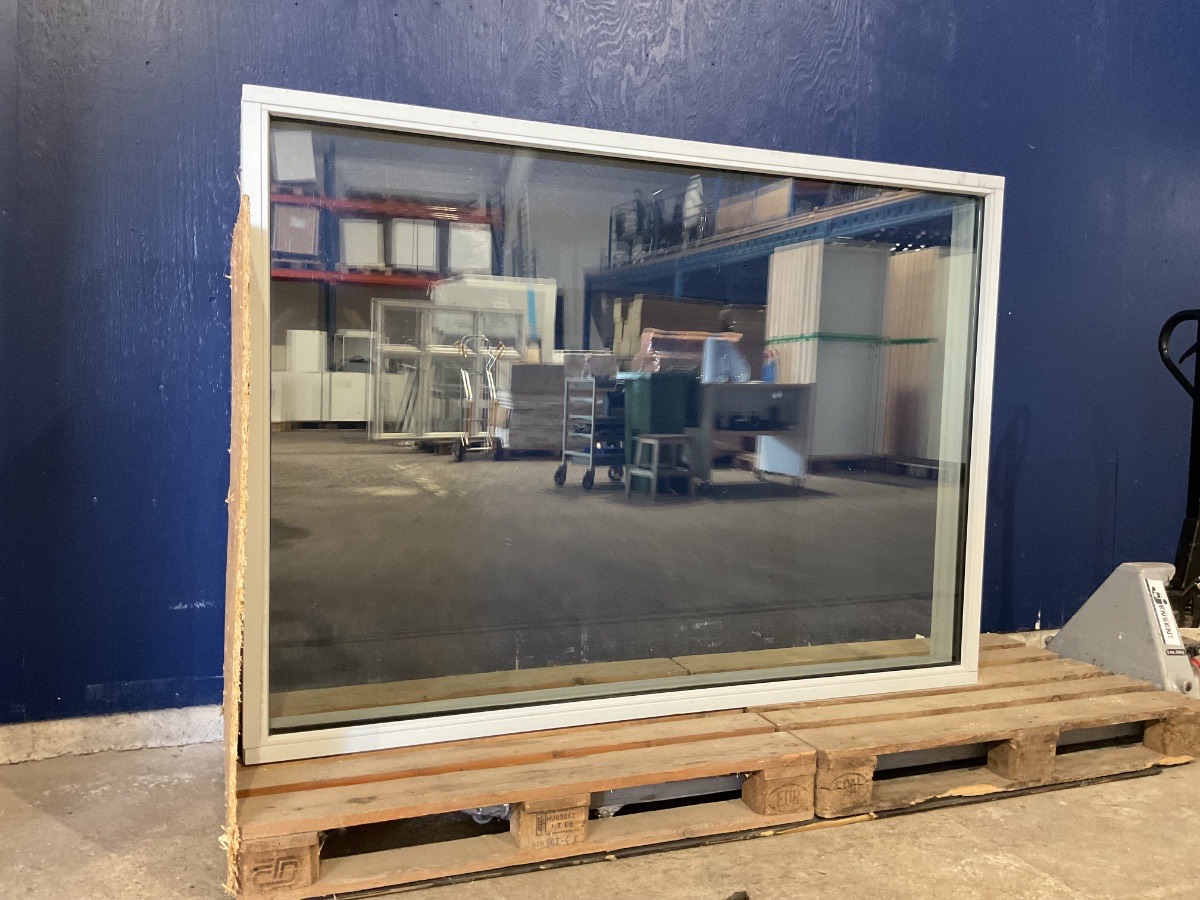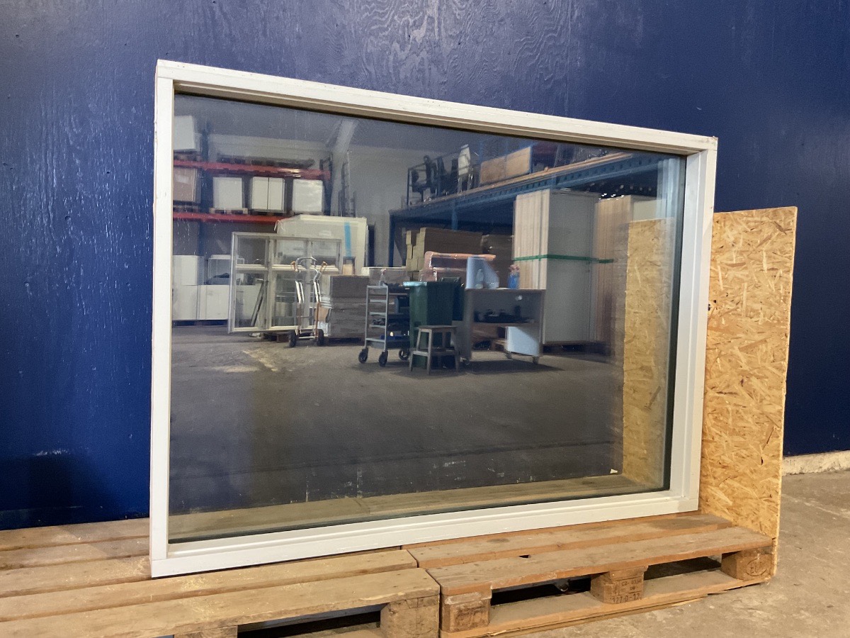 Brugt Vinduesparti, 3 lag glas, fastkarms, termo, har fået fjernet vindue på siden, kan ses på billedet Varenummer: 1087 1, 3 lags glas, Fastkarm, Termovindue, Træ/Alu
