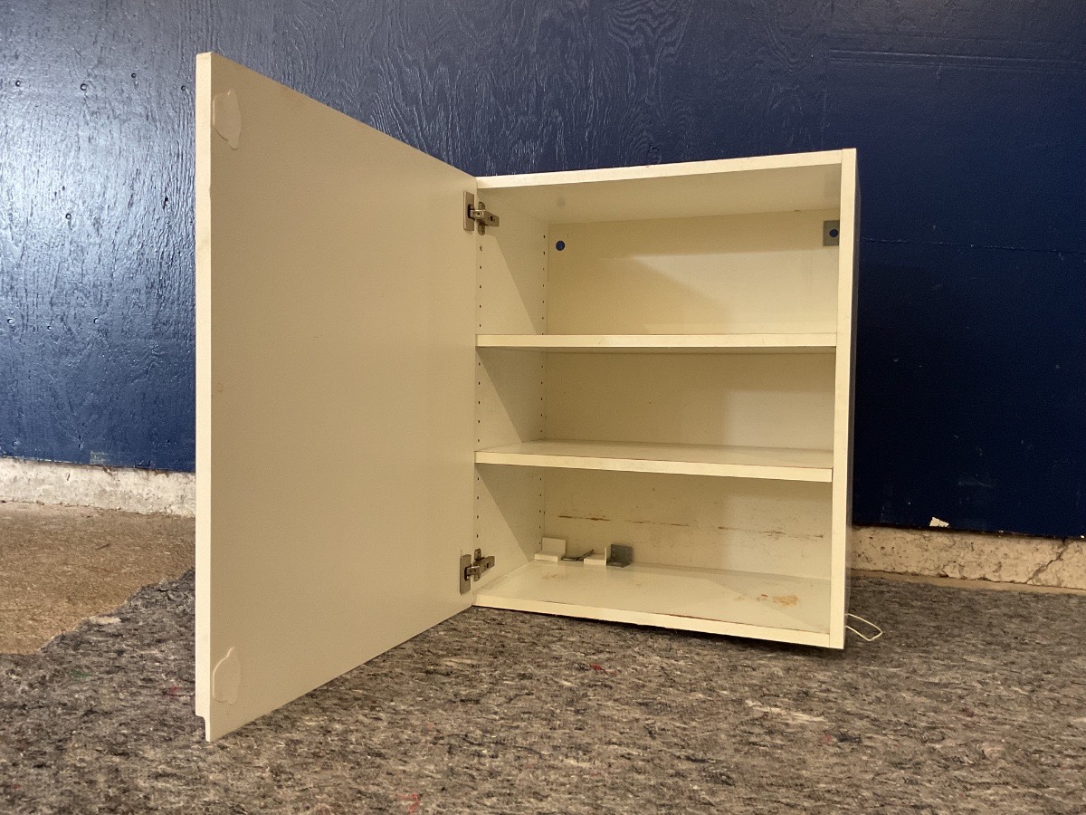 Brugt Overskab, har monteret en lille lampe under skabet, skal lige ha en rengøring inden brug Varenummer: 1088