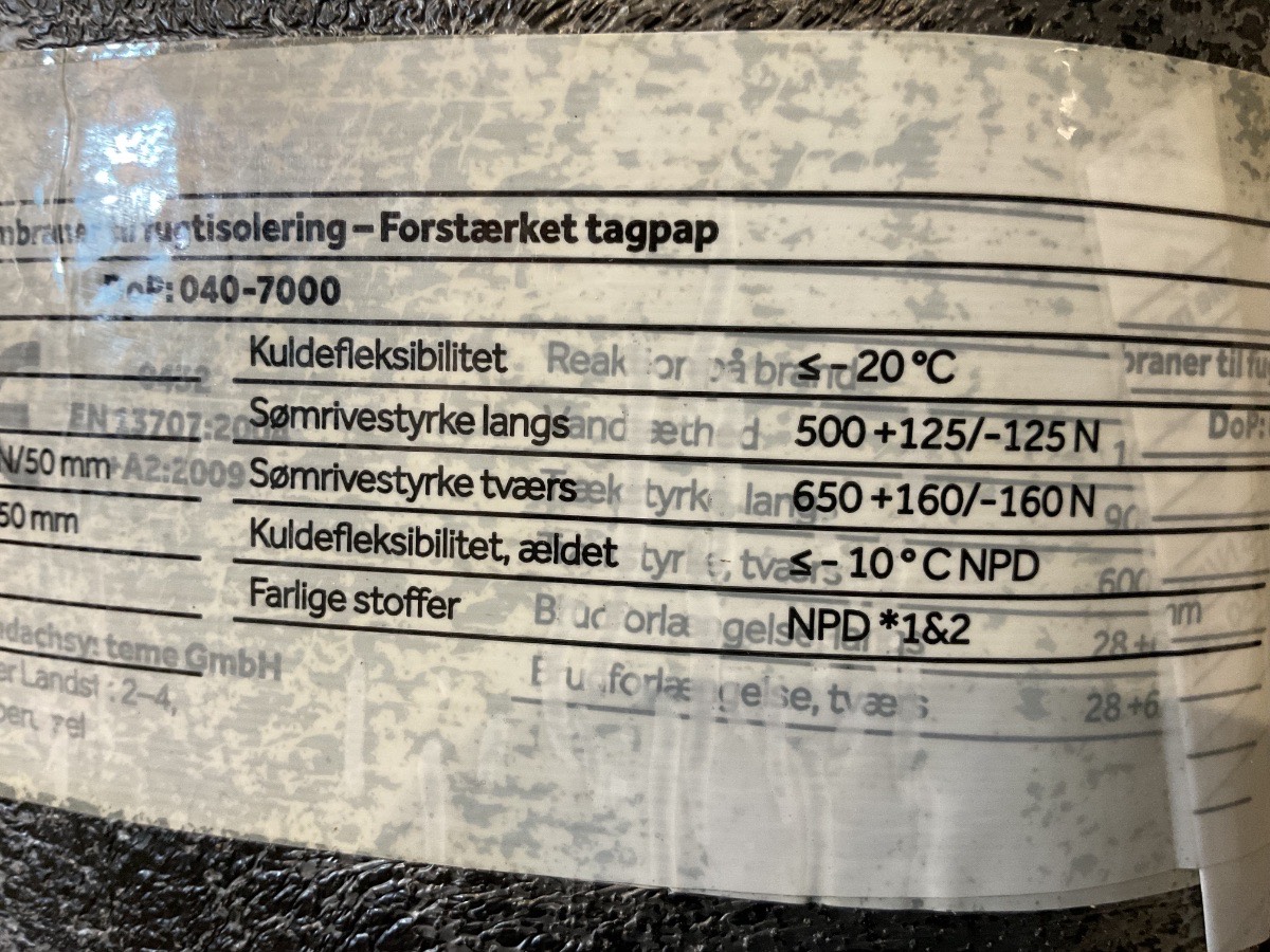 Ubrugt Icopal Pro Verdi Base 600 PG Sand - Underpap, mål og andre informationer kan ses på billederne, pris pr stk: 500Kr Varenummer: 1271