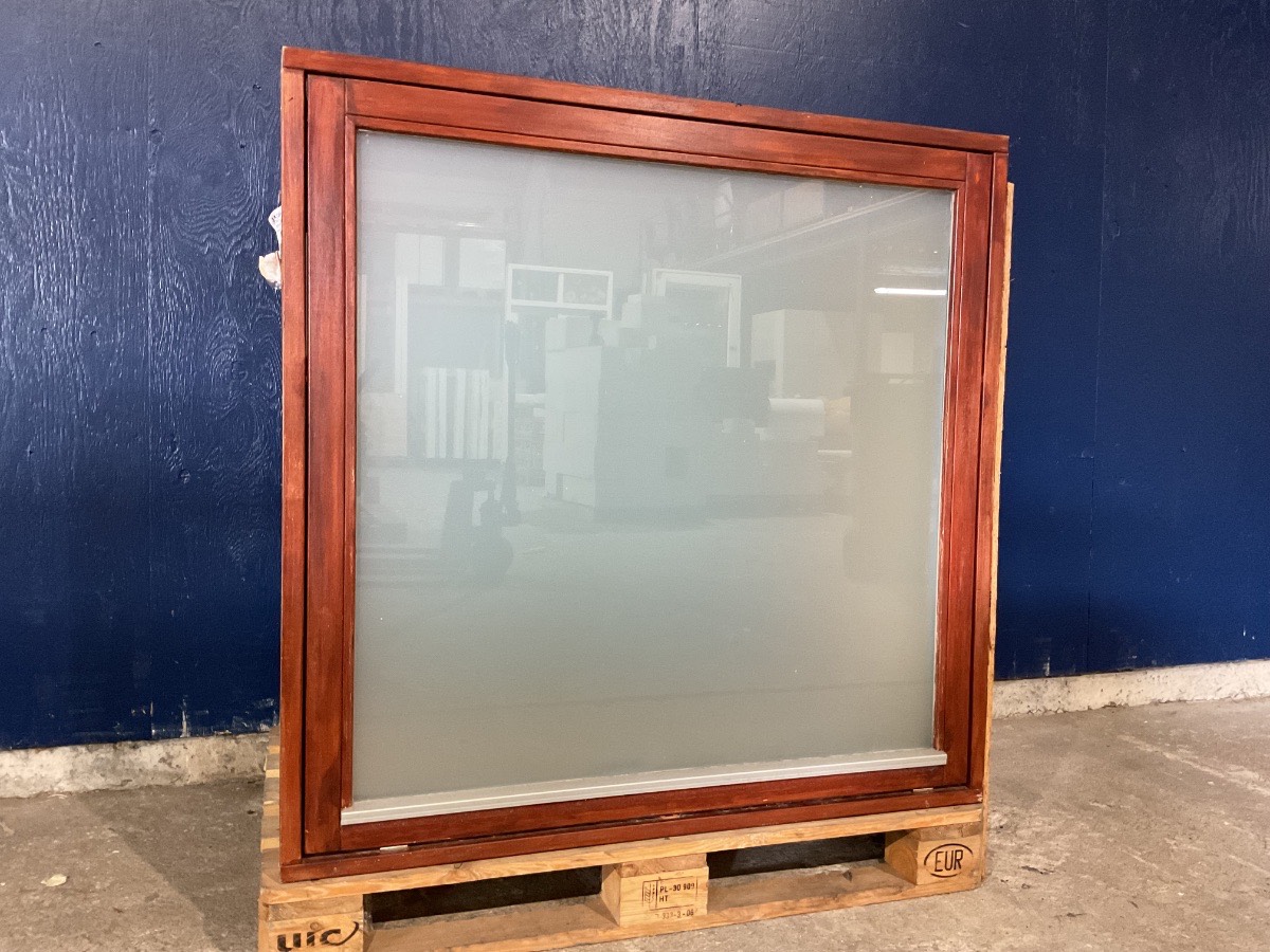 Brugt Mahogni Vindue, træ/træ, topstyret, 2 lag glas, matteret, mål: H115 B117 D11,5 Varenummer: 1307 1, 2 lags glas, Topstyret, Træ/Træ, Andet