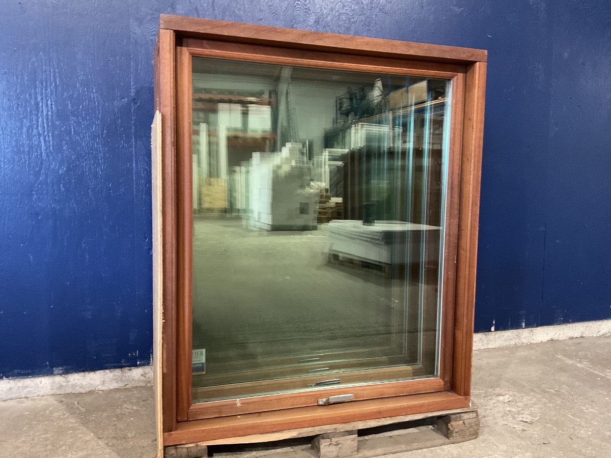 Brugt Mahogni Vindue, træ/træ, topstyret, 2 lag glas, mål: H135 B115 D11,5 Varenummer: 1311 1, 2 lags glas, Topstyret, Træ/Træ, Andet