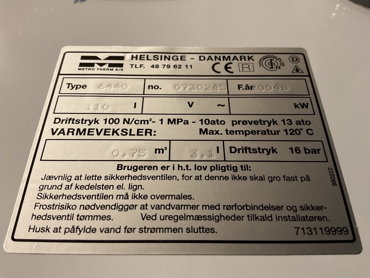 Brugt Metro Varmtvandsbeholder 110 Liter, info kan ses på billeder Varenummer: 1324