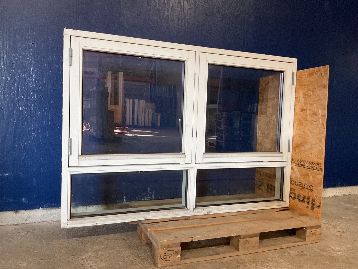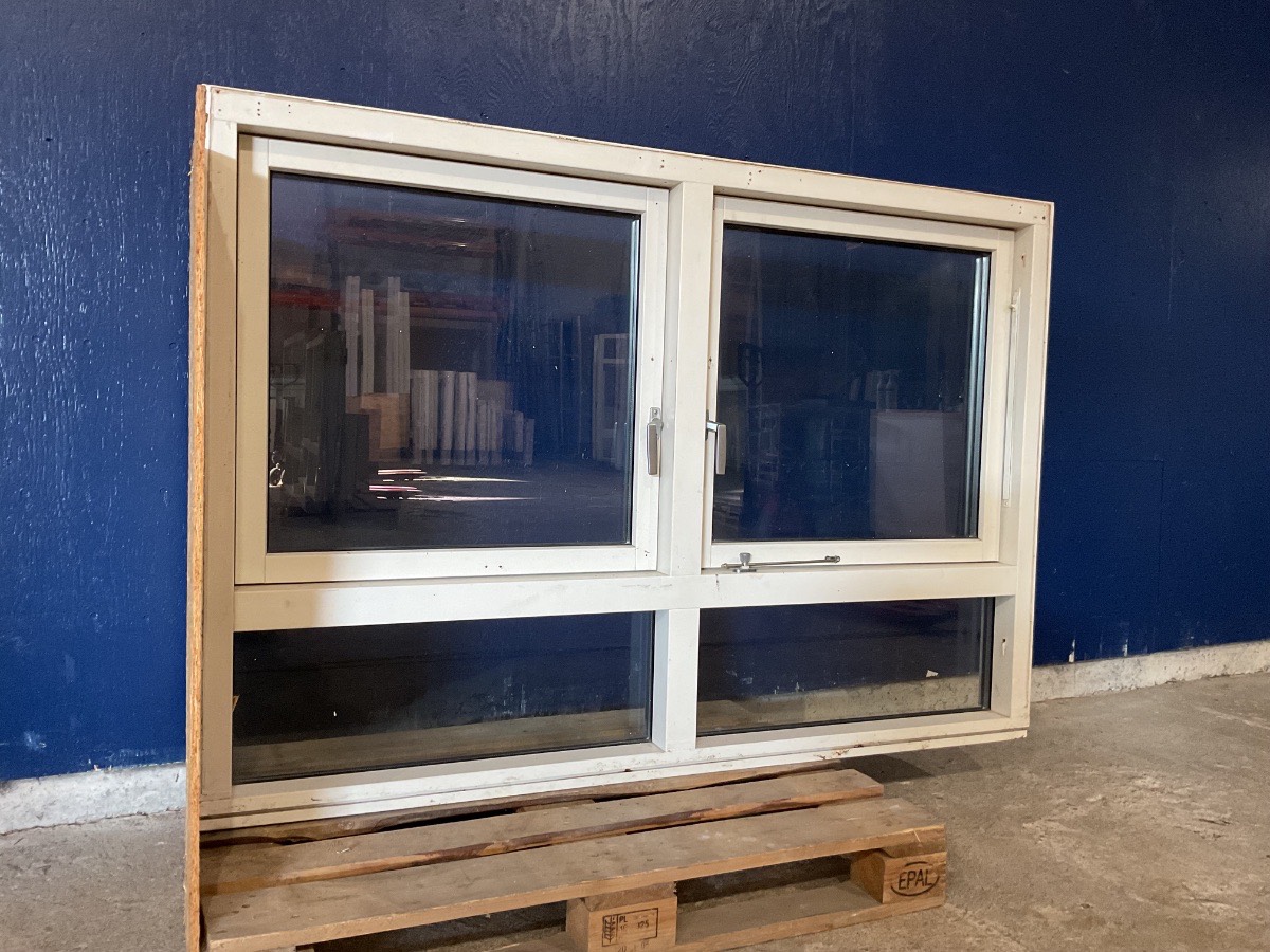 Brugt Vinduesparti, træ/træ, sidehængt/fastkarm, 2 lag glas, udluftning, tjek vores hjemmeside for lager status Varenummer: 1330 4, 2 lags glas, Sidehængt, Fastkarm, Udluftning, Træ/Træ