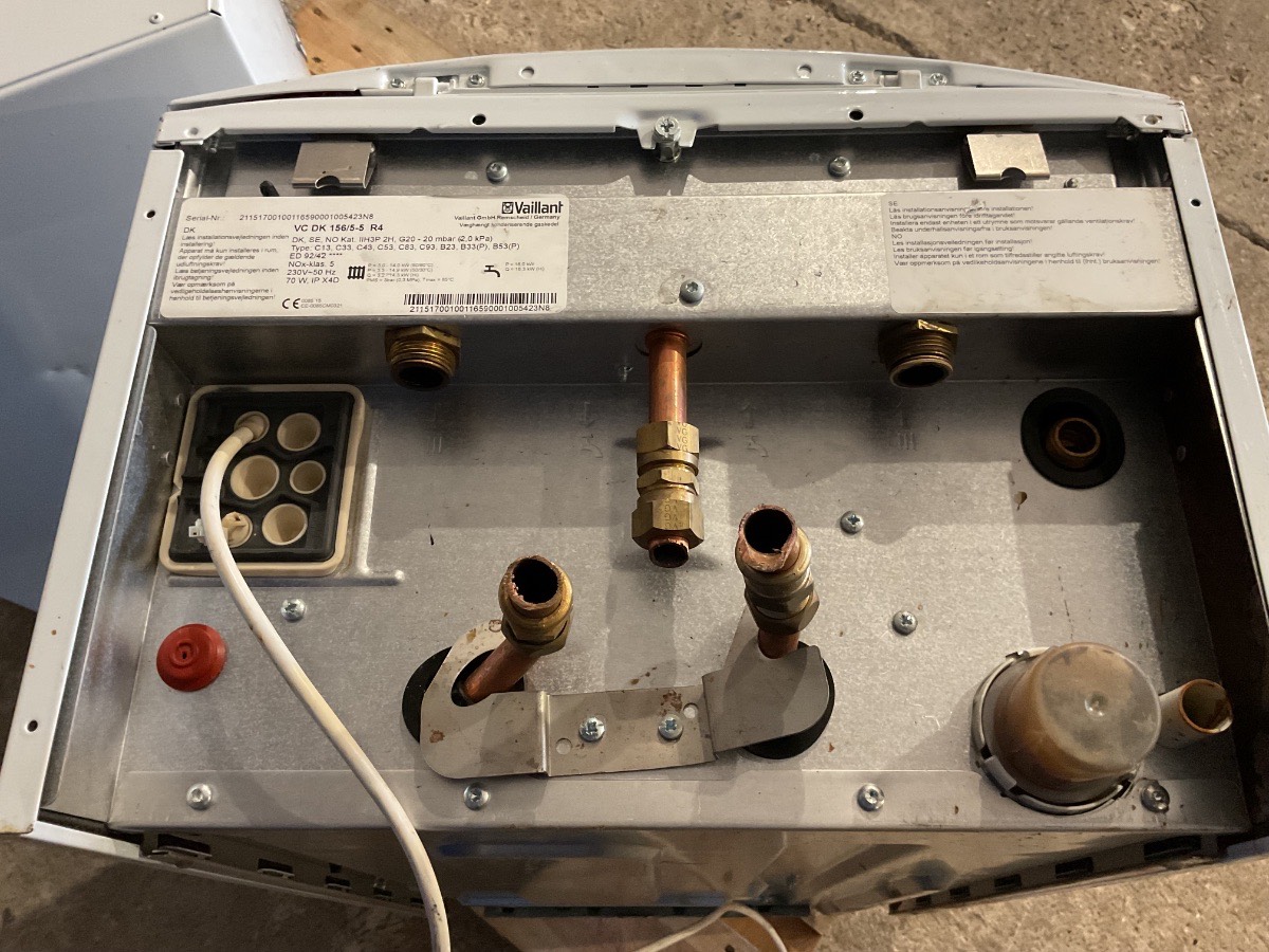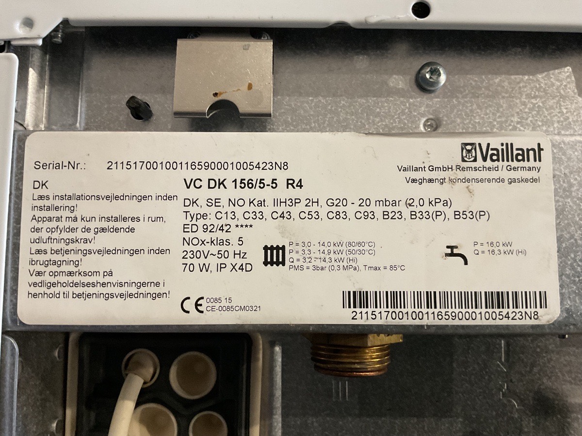 Brugt Vaillant Gasfyr + Vaillant Vandbeholder 60 Liter, info om begge maskiner kan ses på billeder, mål: Vandbeholder H72,4 B44,2 D44, Gasfyr: H72 B43,8 D38,5, dette sæt bliver solgt samlet Varenummer: 1369