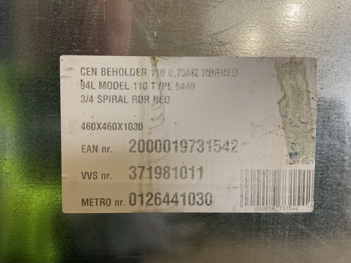 Brugt Metro Varmtvandsbeholder 94 Liter, info kan ses på billeder Varenummer: 1375